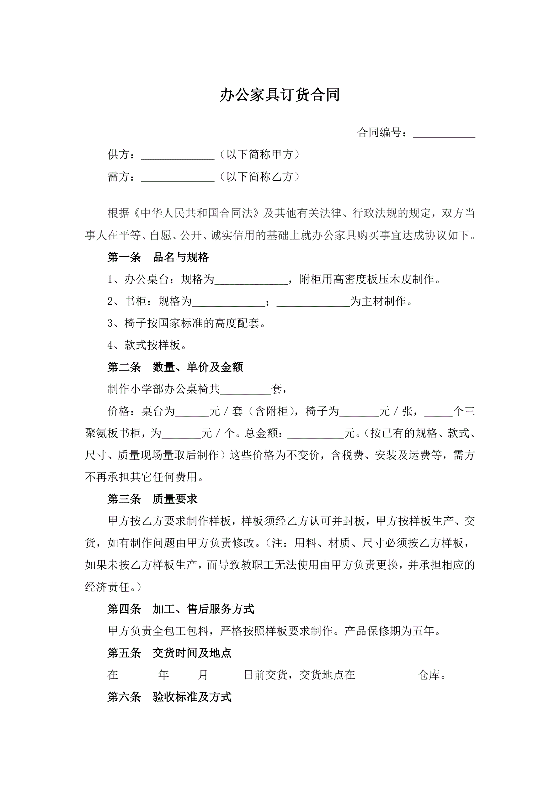 办公家具订货合同