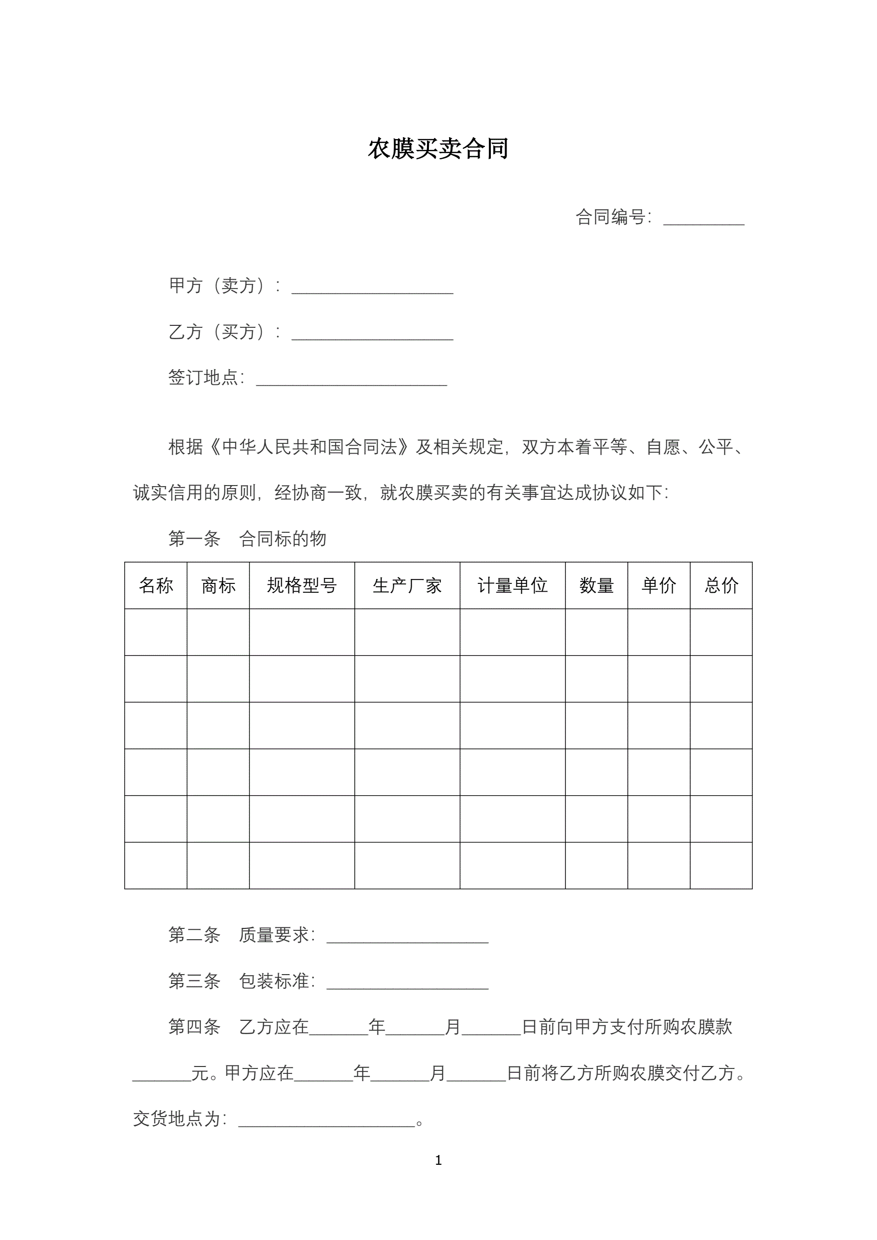 >农膜买卖合同