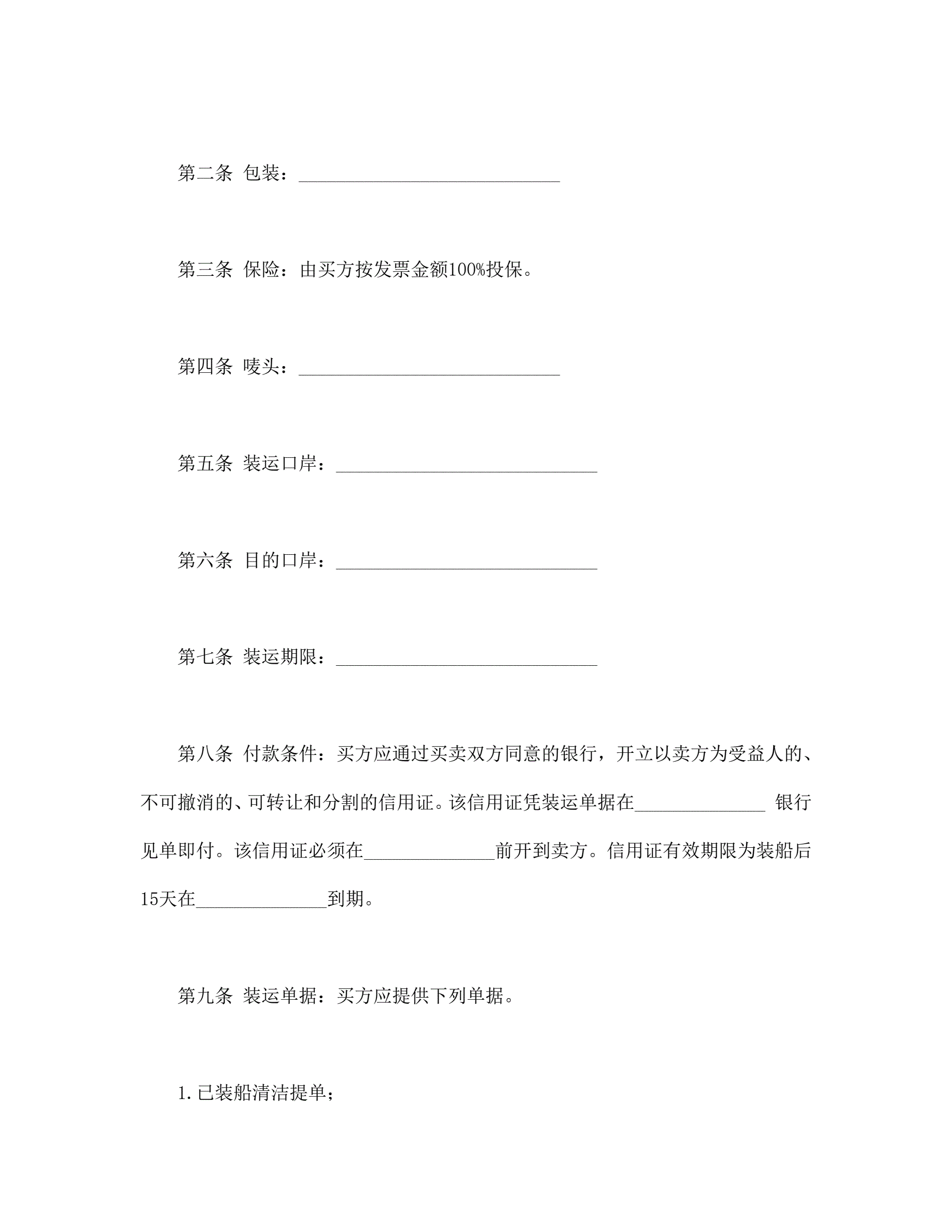 国际售货合同