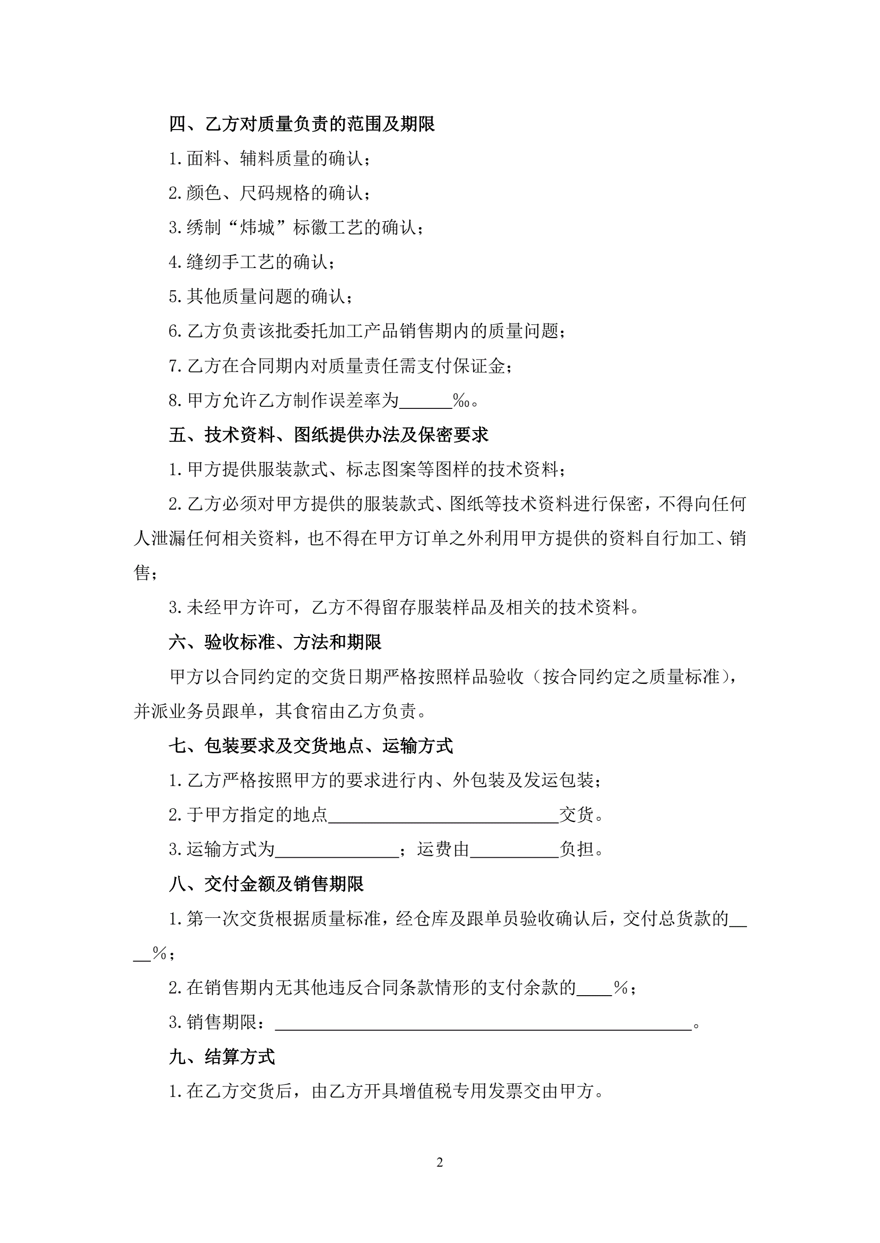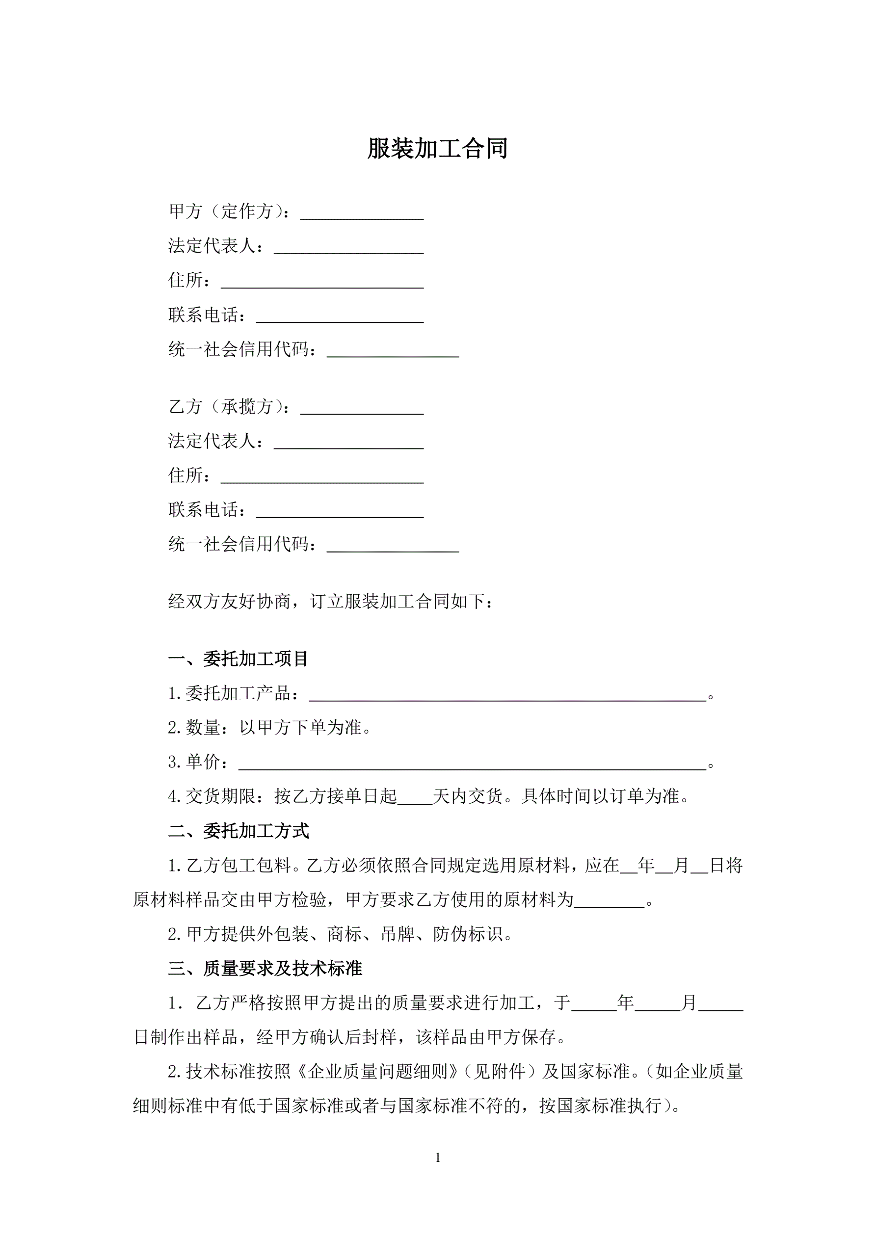 服装加工合同