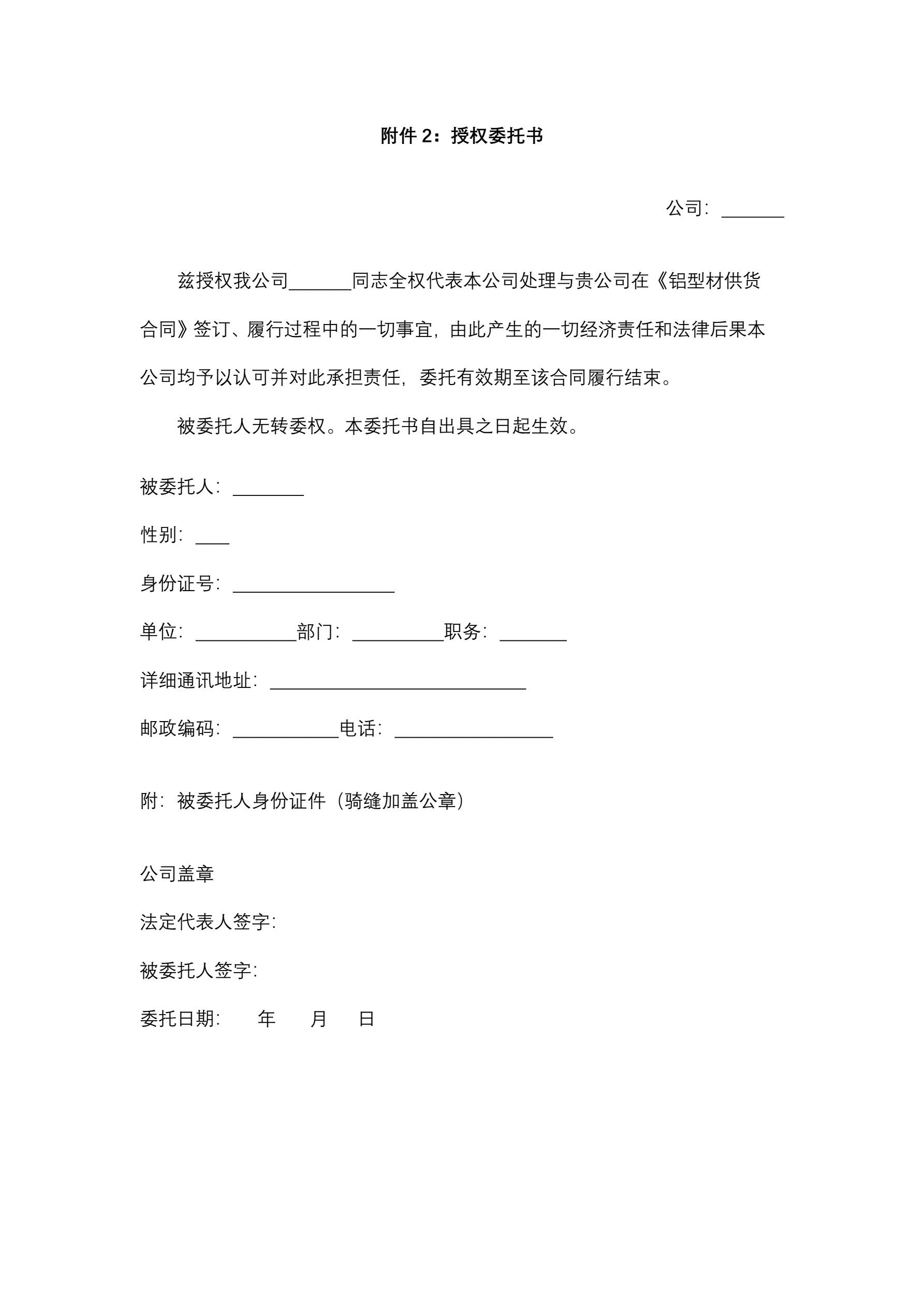 合同名称:铝型材供货合同