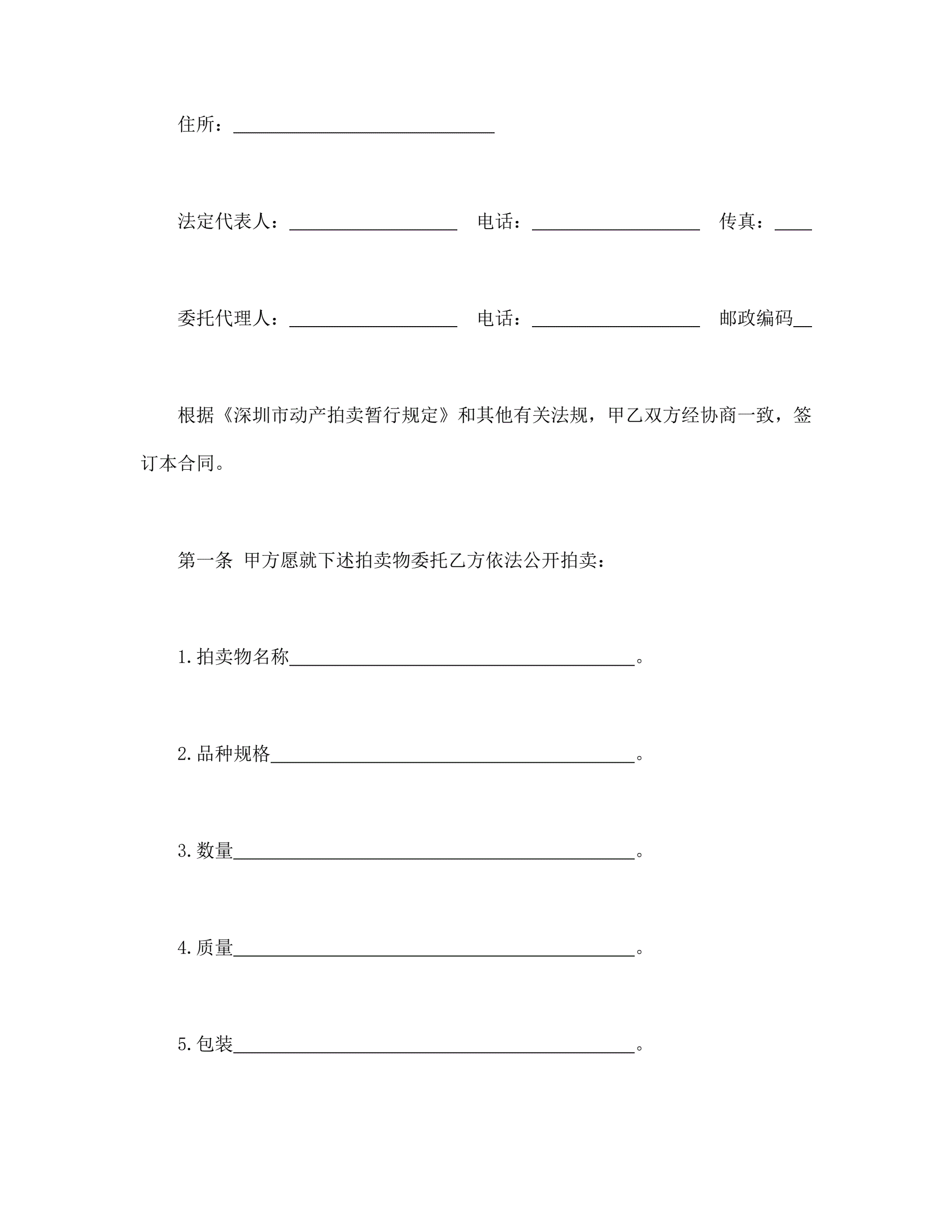 深圳市动产拍卖行委托拍卖合同