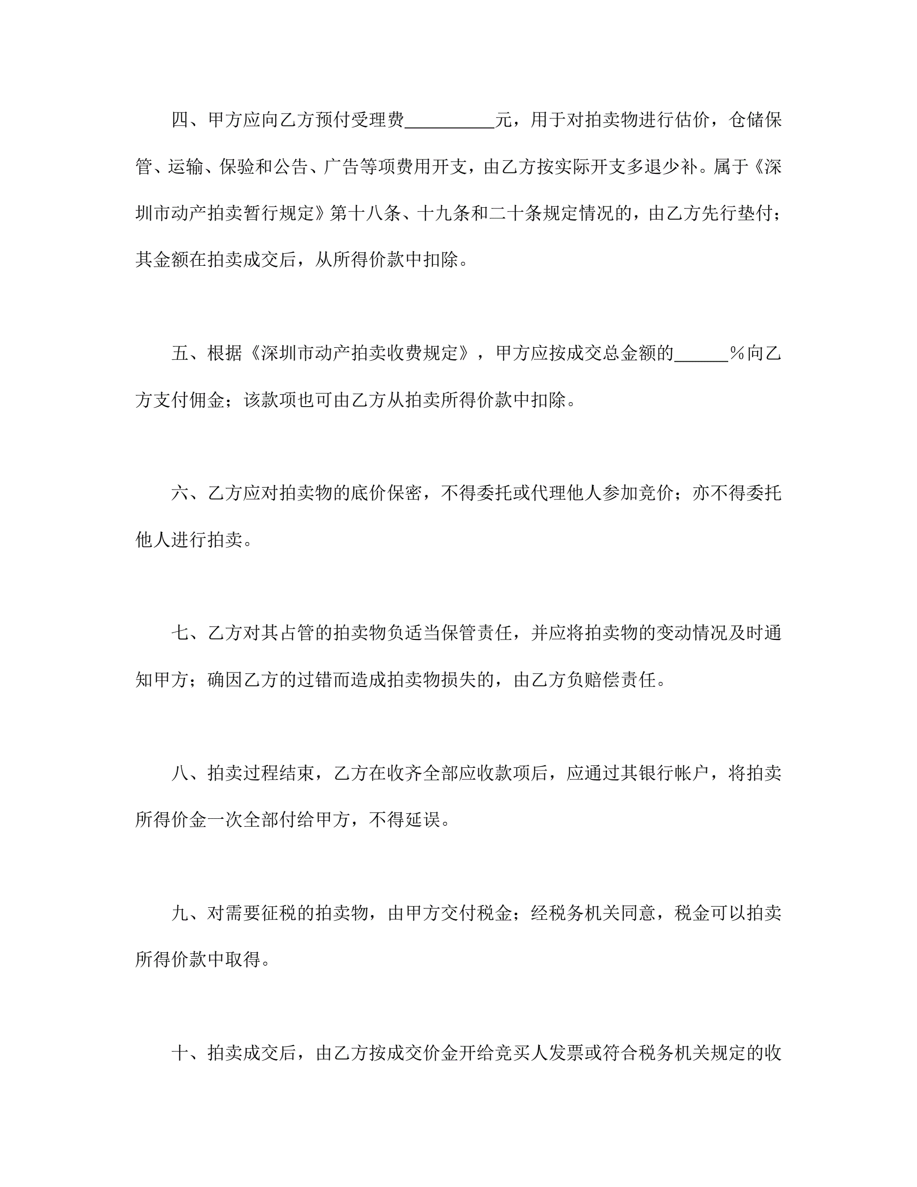 >深圳市动产拍卖行委托拍卖合同