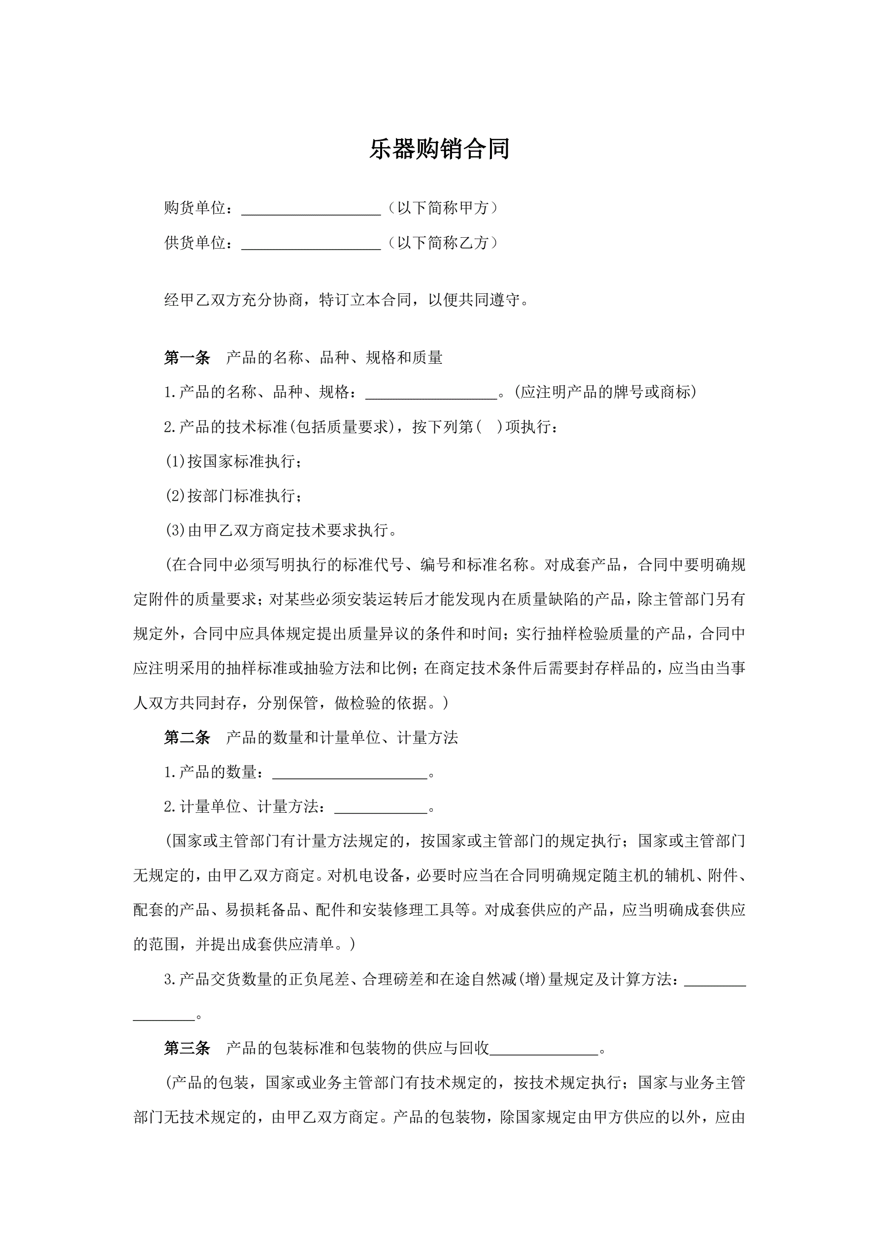 乐器购销合同