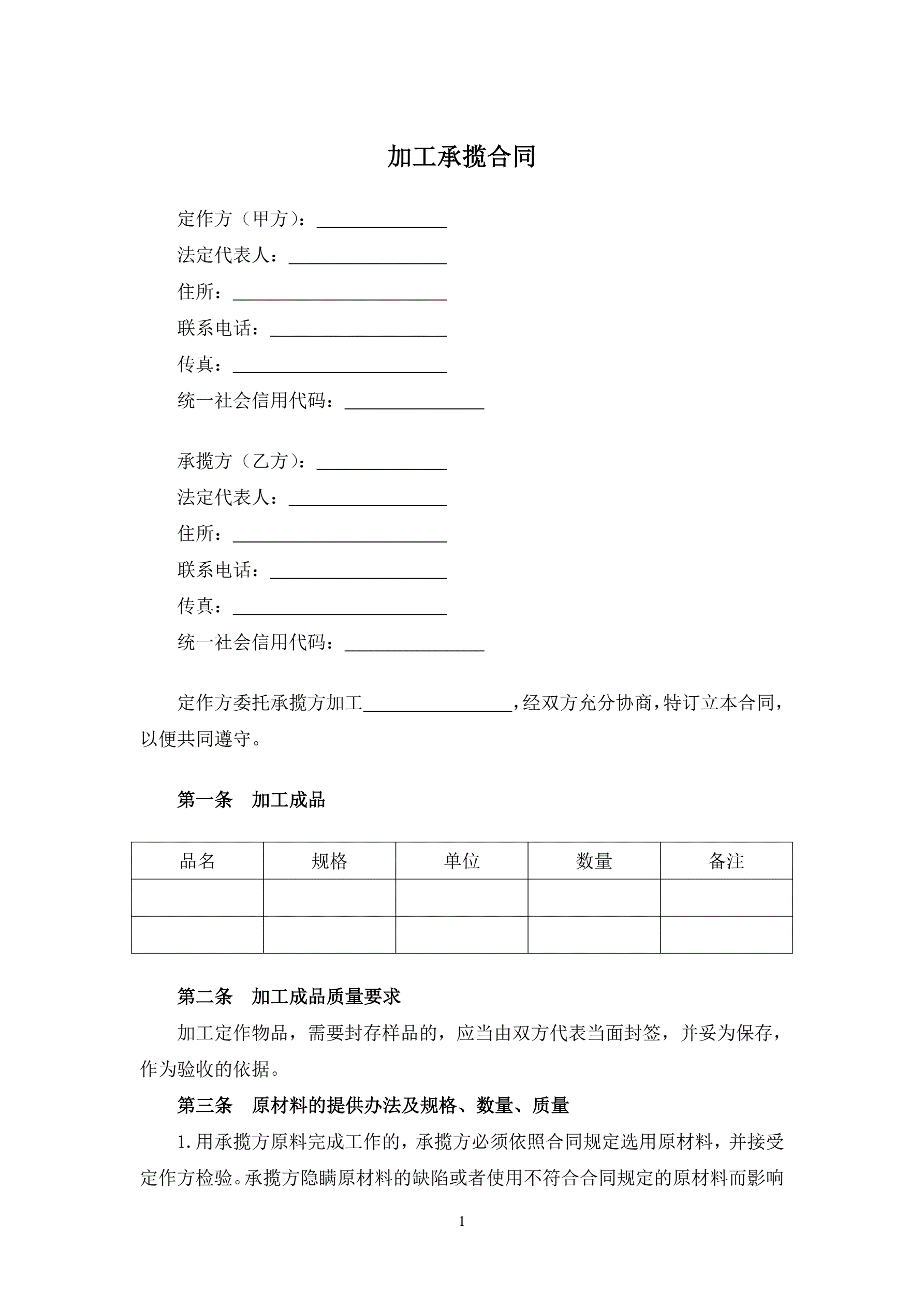 >加工承揽合同(1)