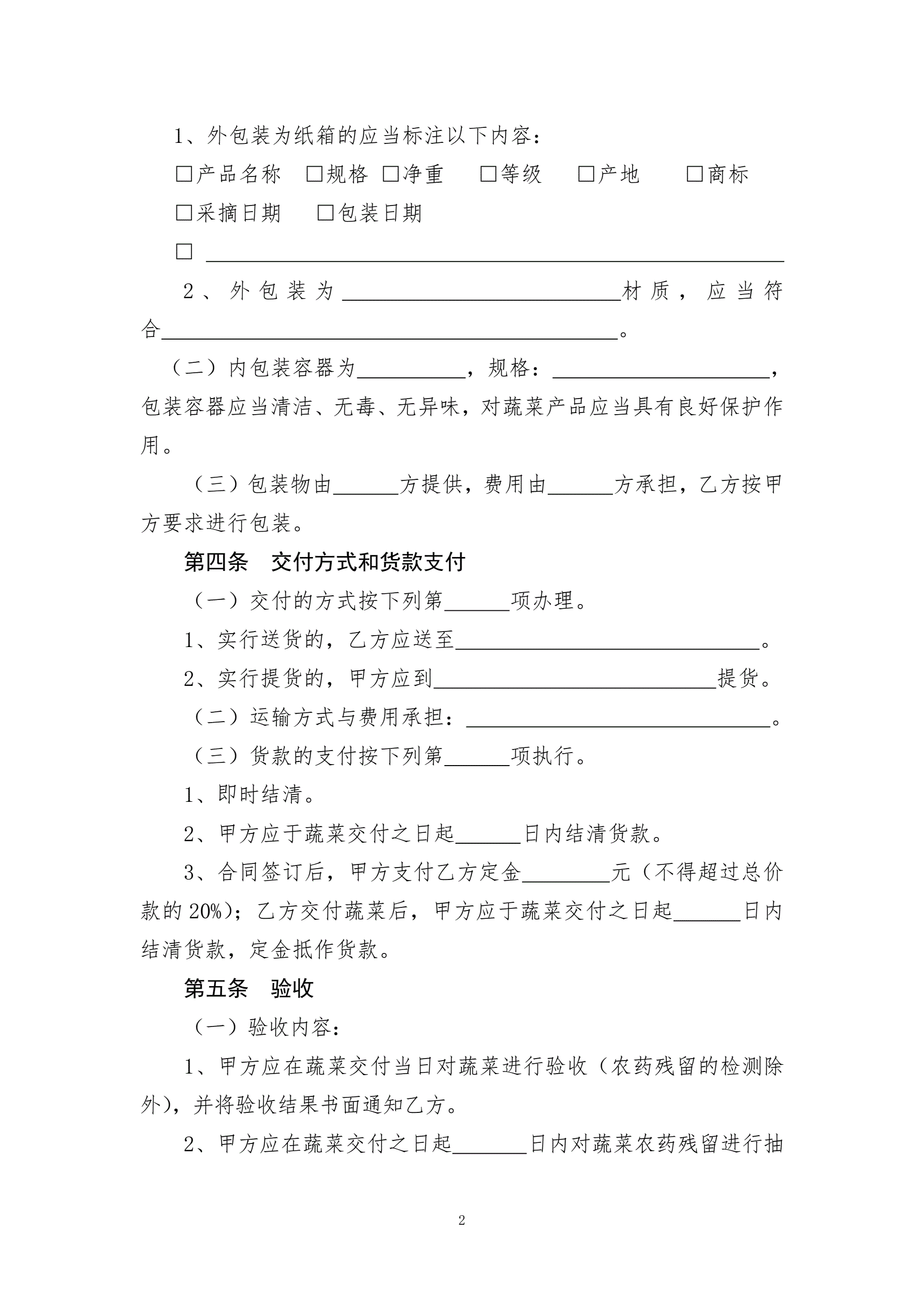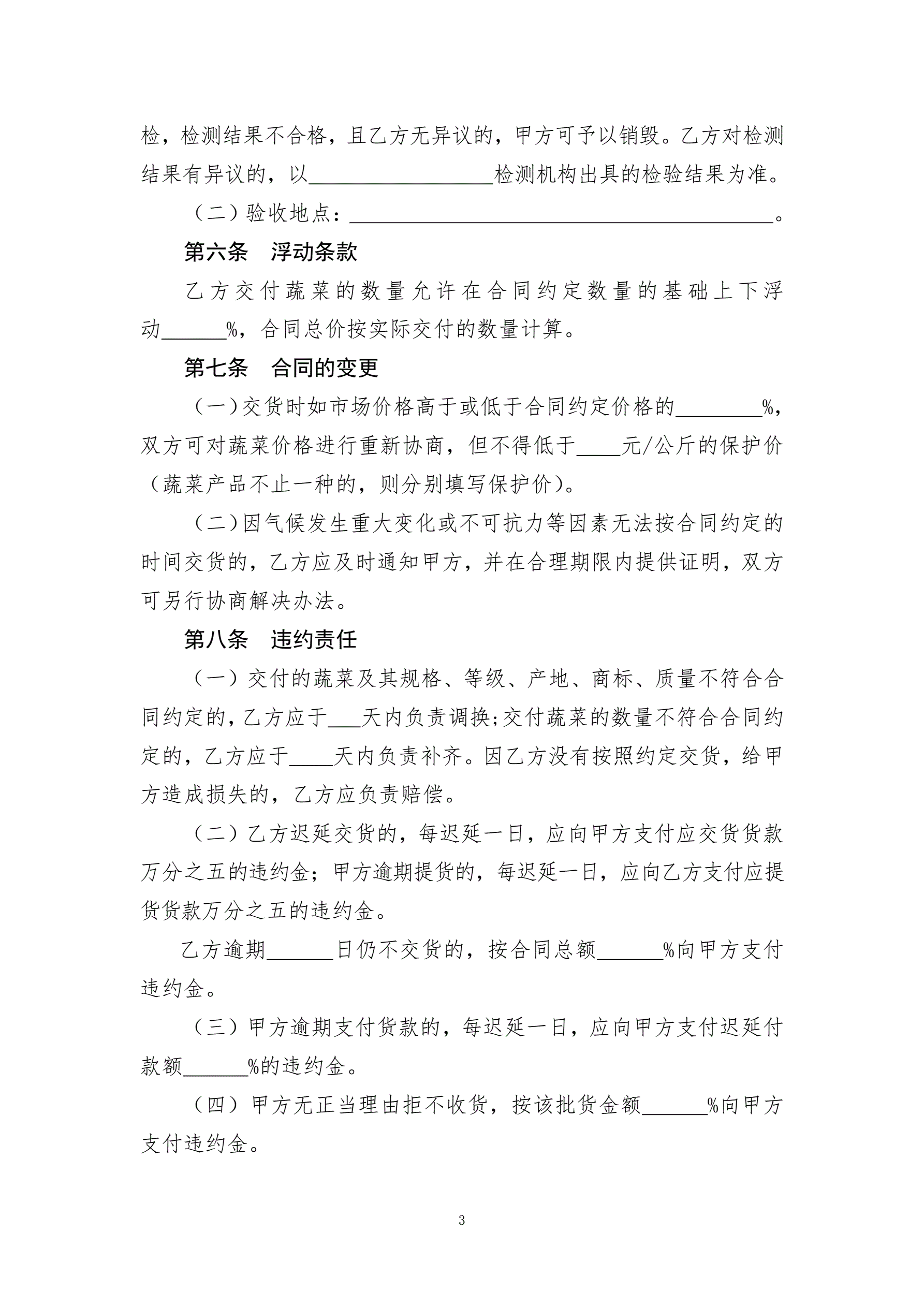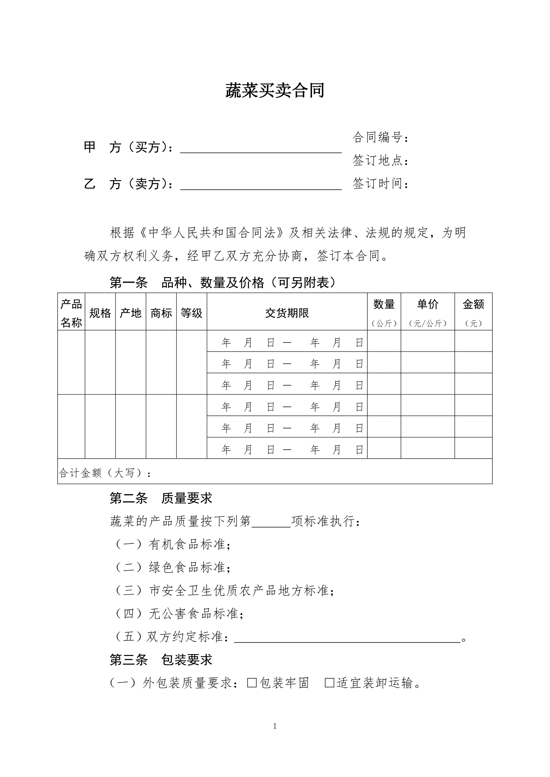 蔬菜买卖合同