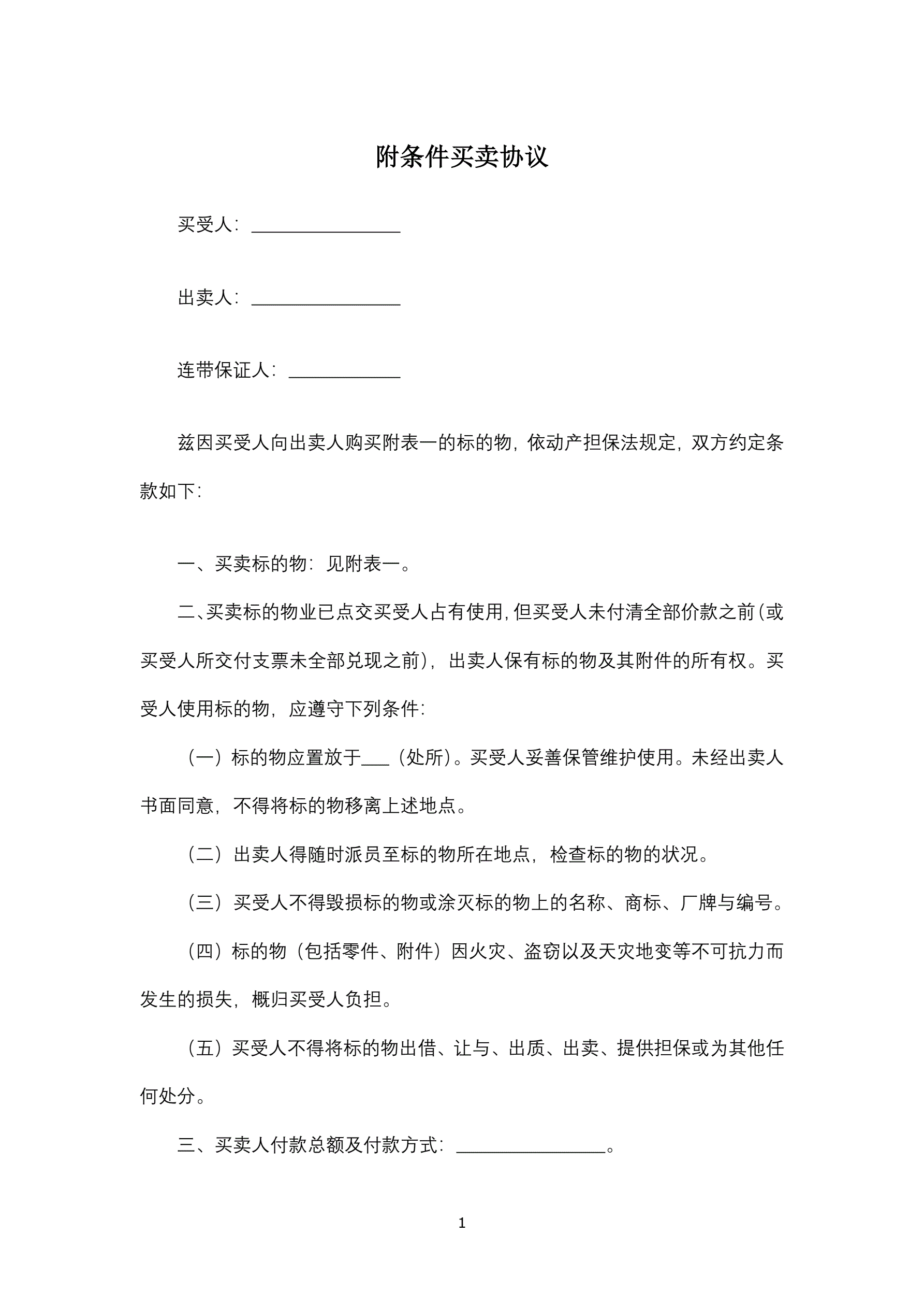 >附条件买卖协议