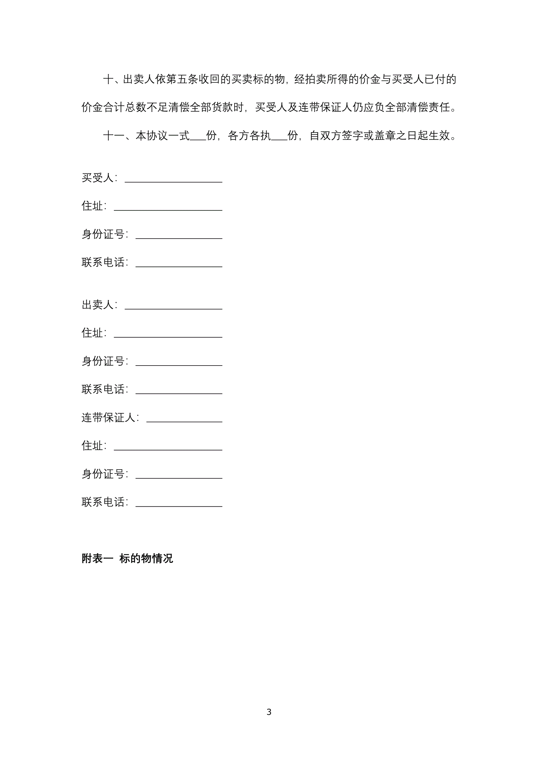 附条件买卖协议
