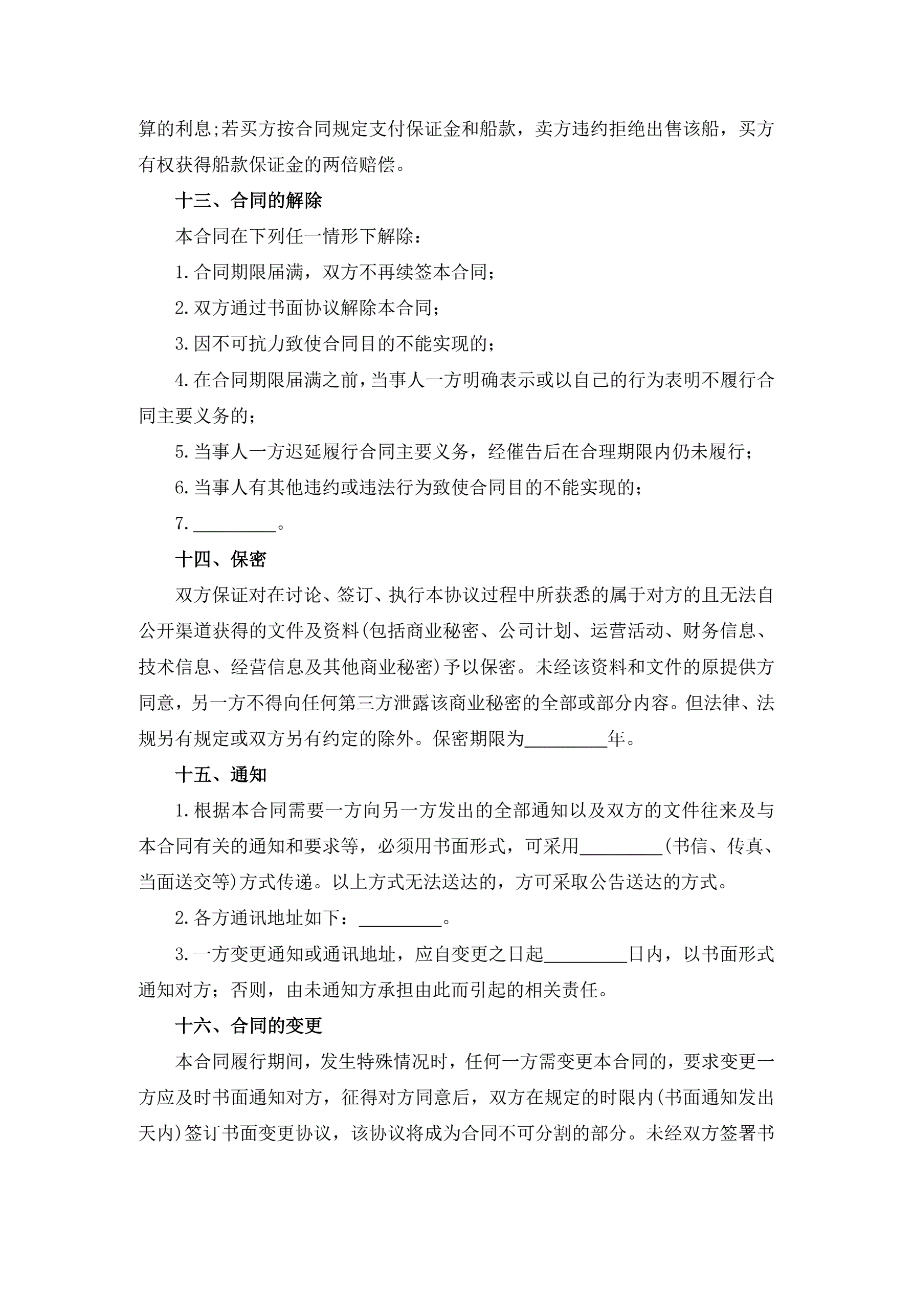 合同名称:船舶买卖合同