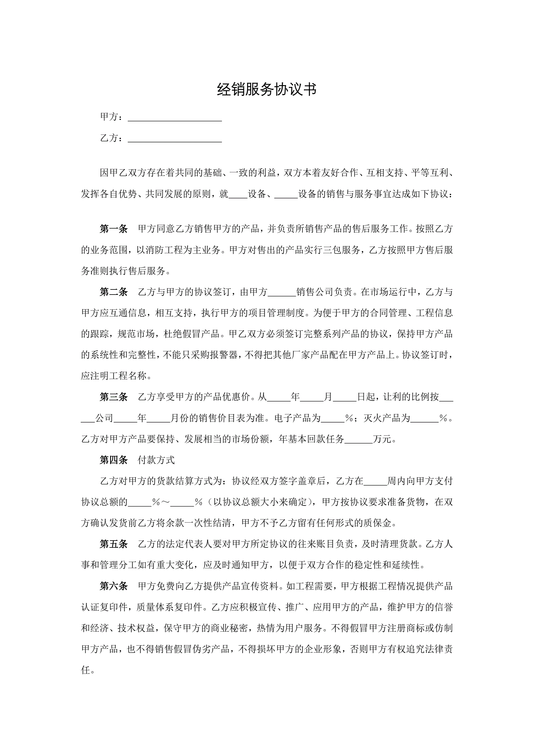 经销服务协议书
