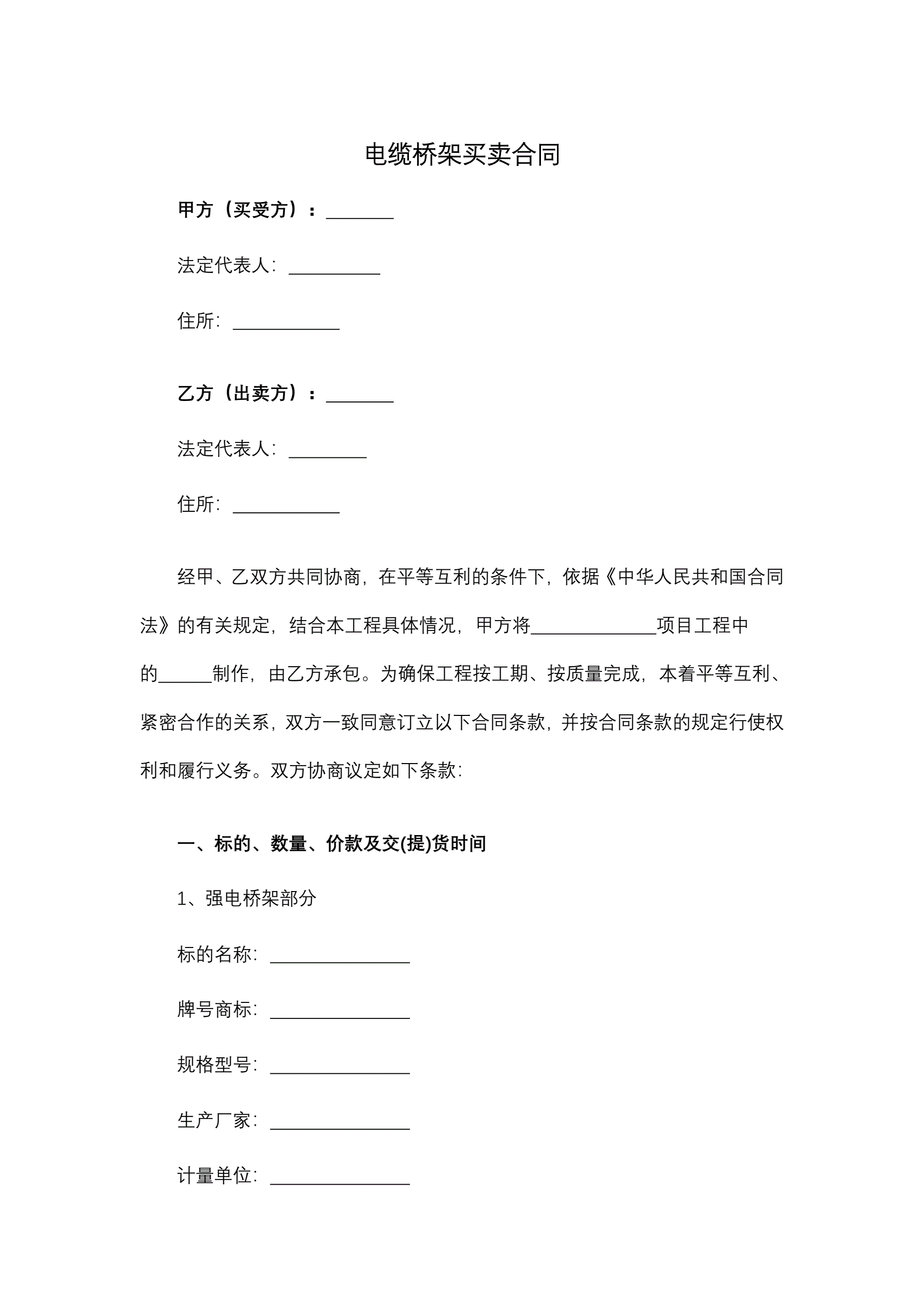 合同名称:电缆桥架买卖合同