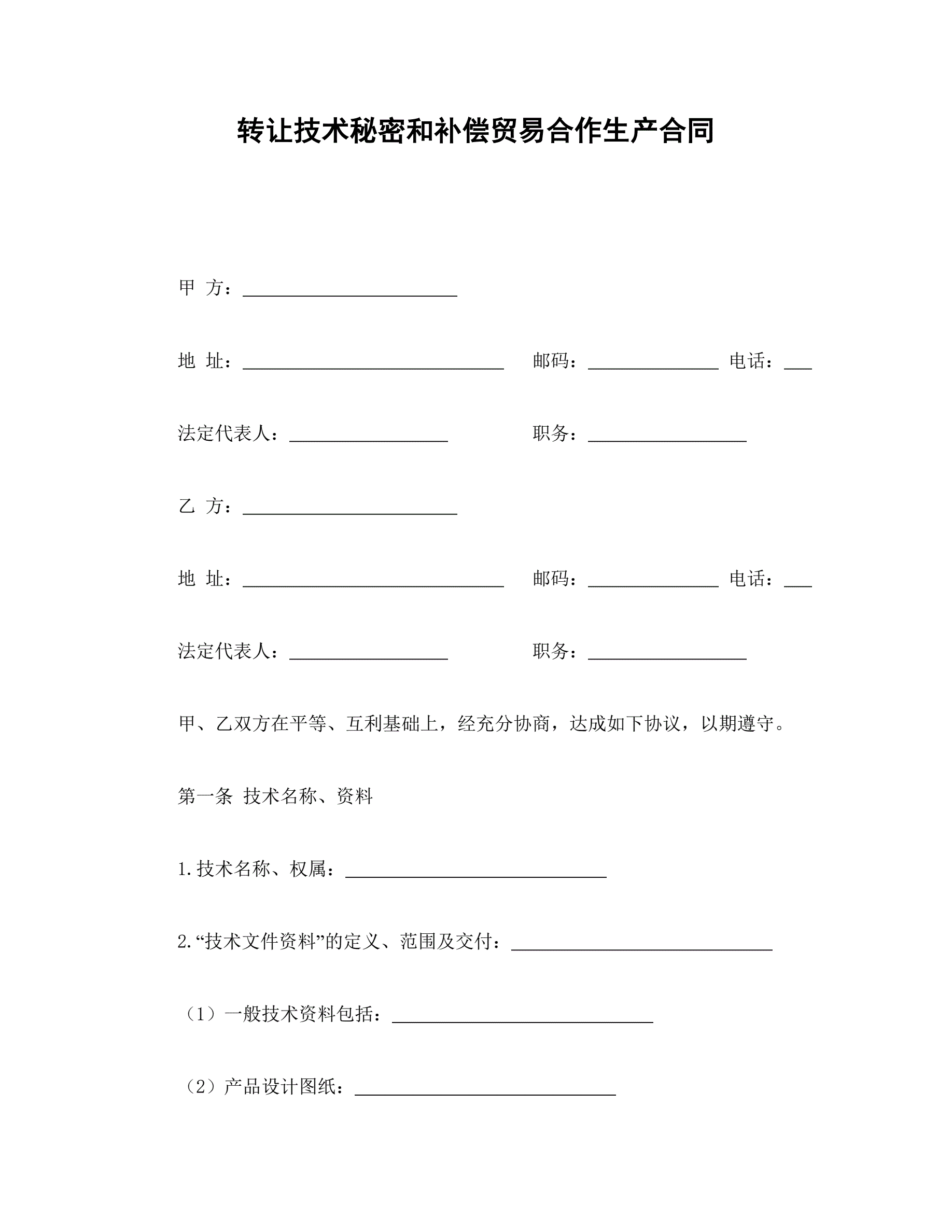 >转让技术秘密和补偿贸易合作生产合同