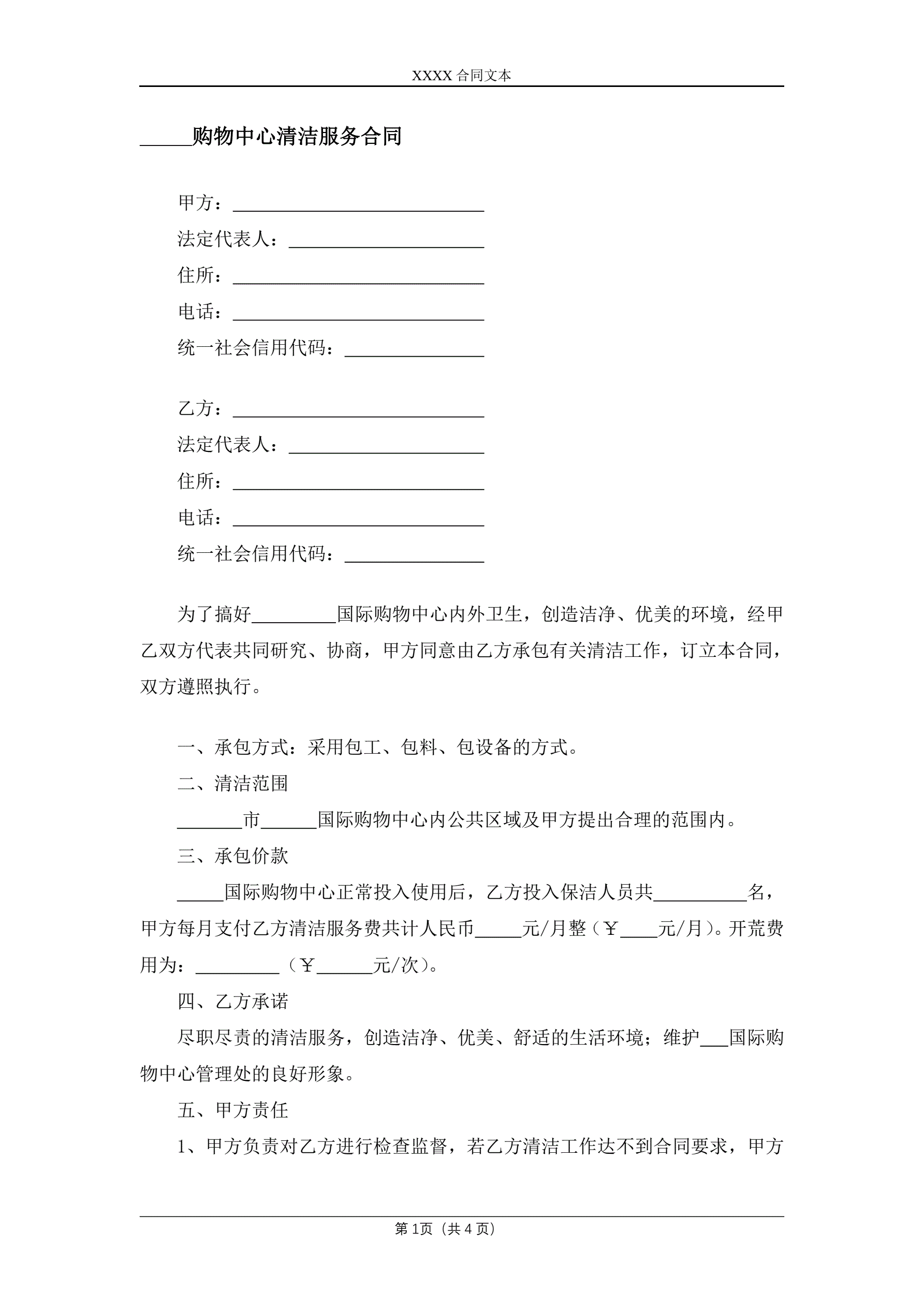 >购物中心清洁服务合同