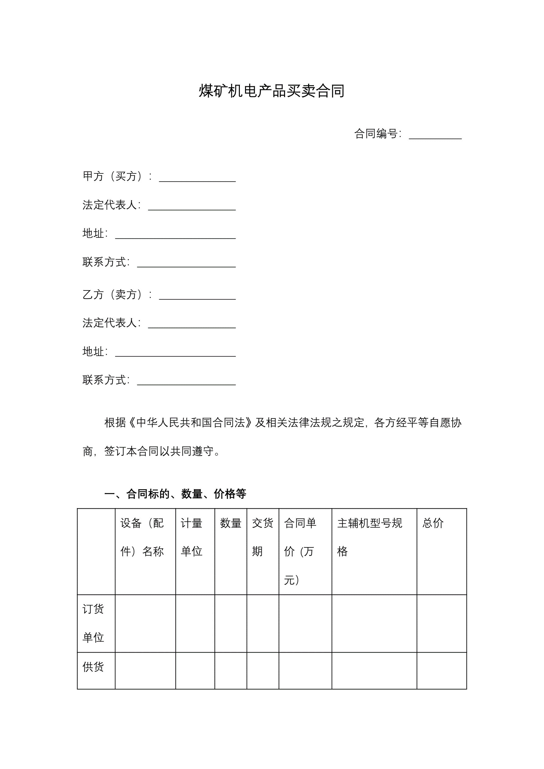 煤矿机电产品买卖合同