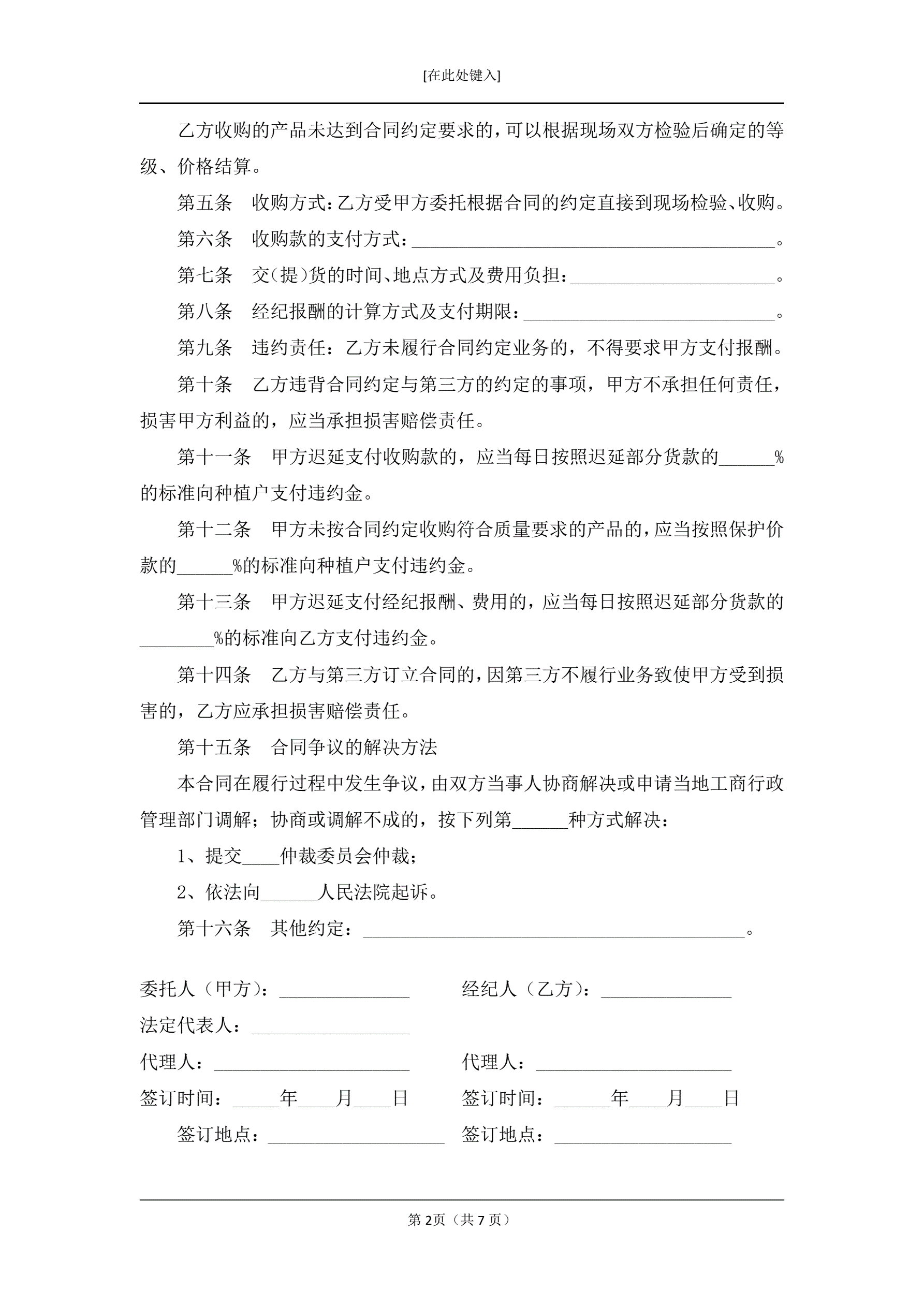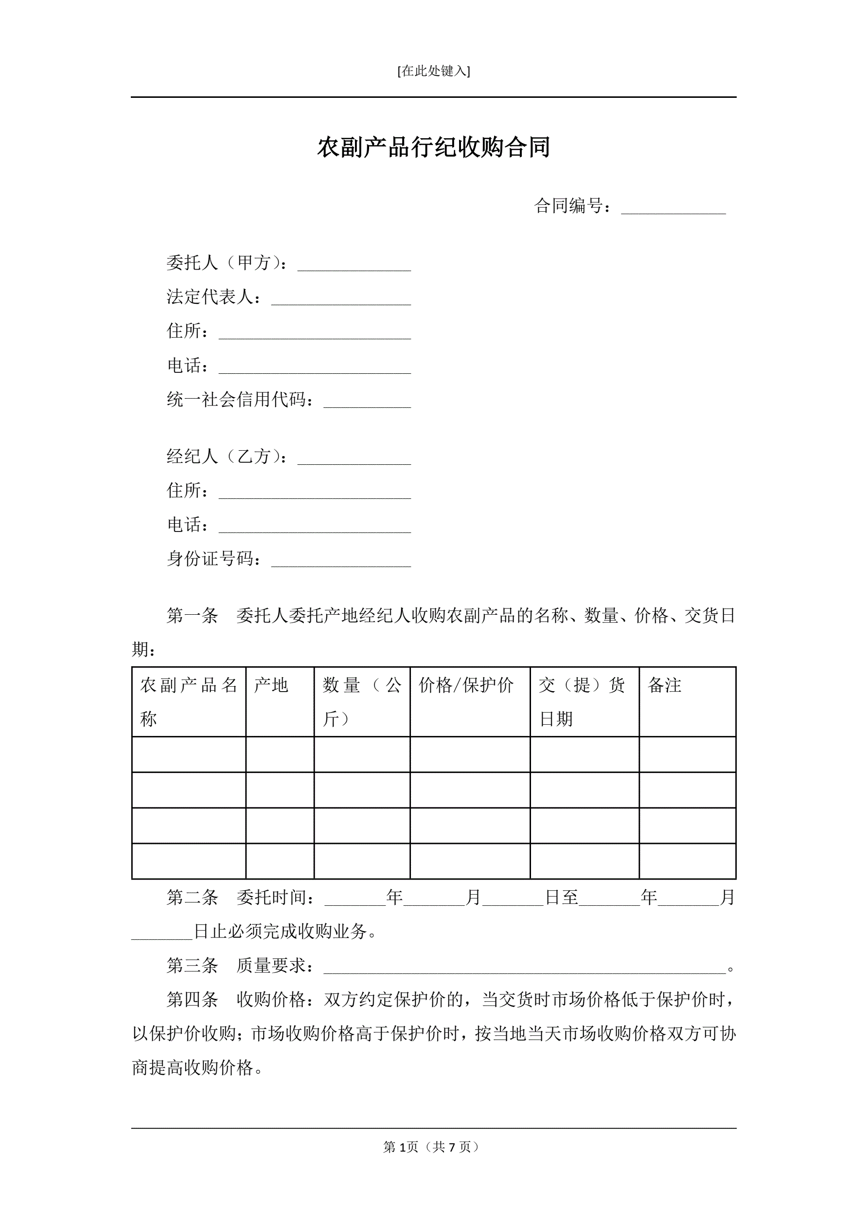 农副产品行纪收购合同