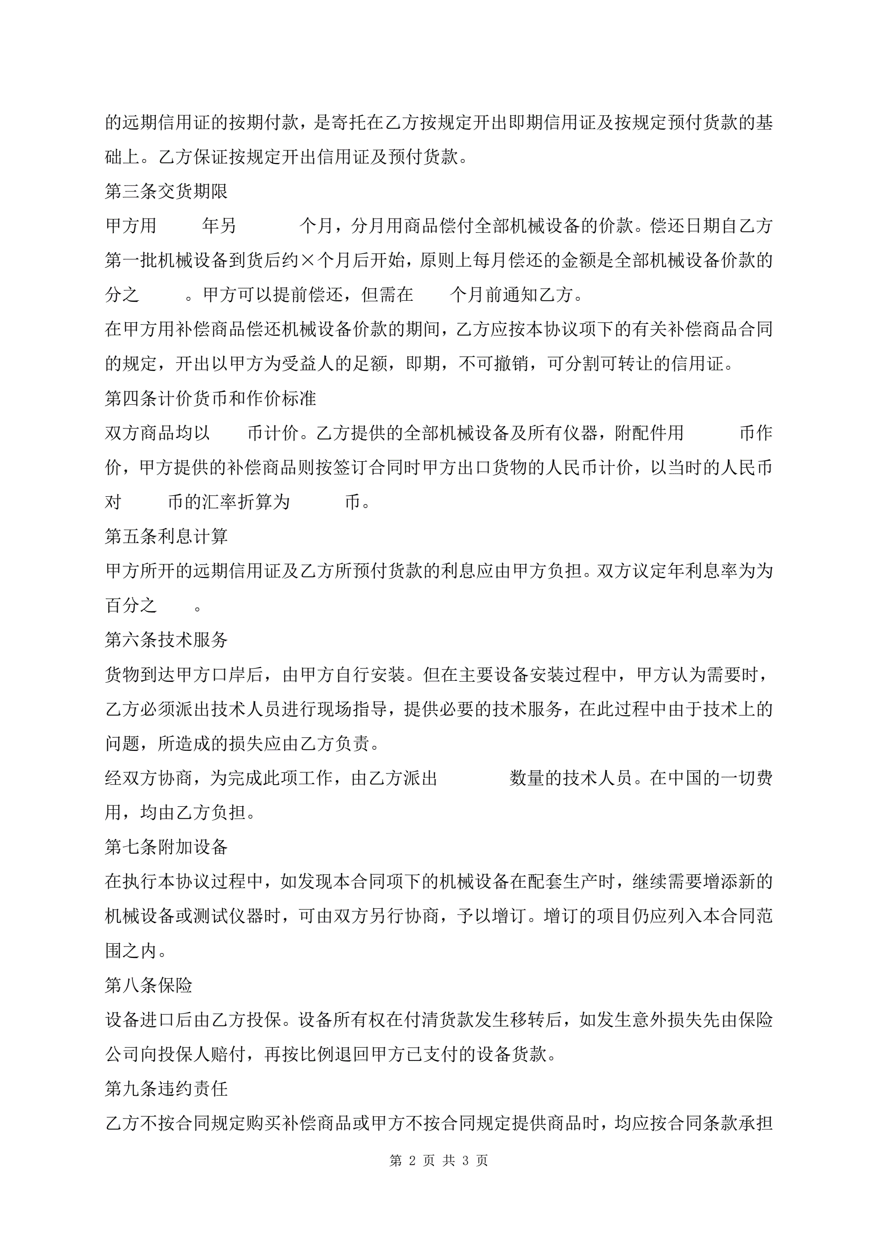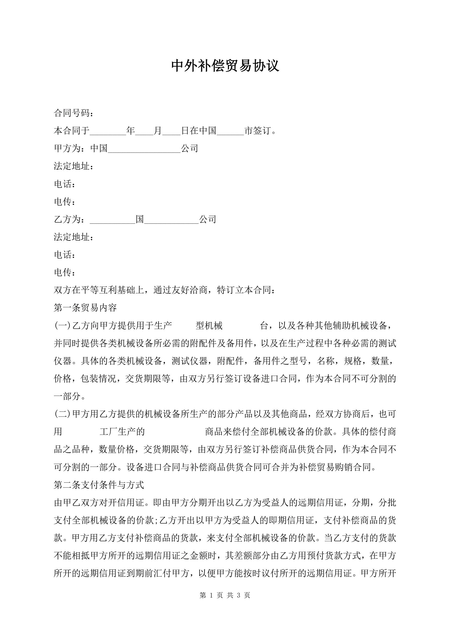中外补偿贸易协议