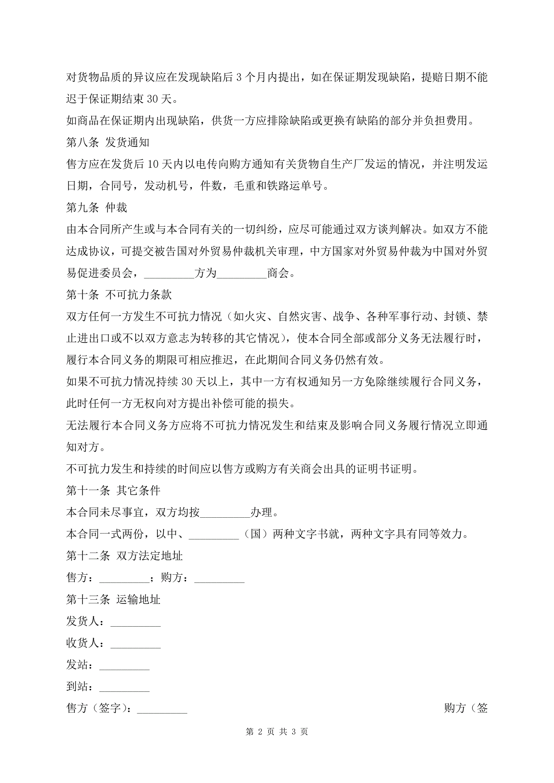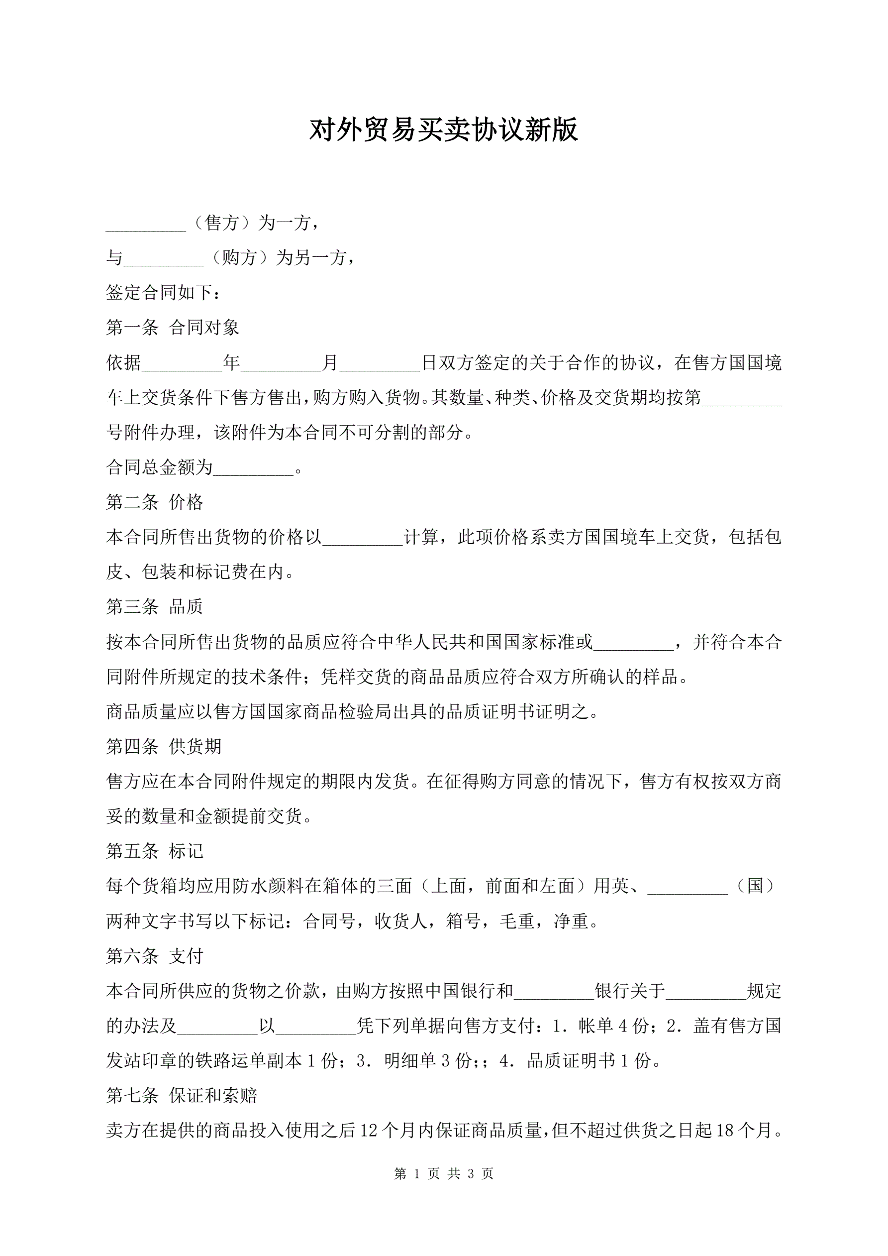 >对外贸易买卖协议新版