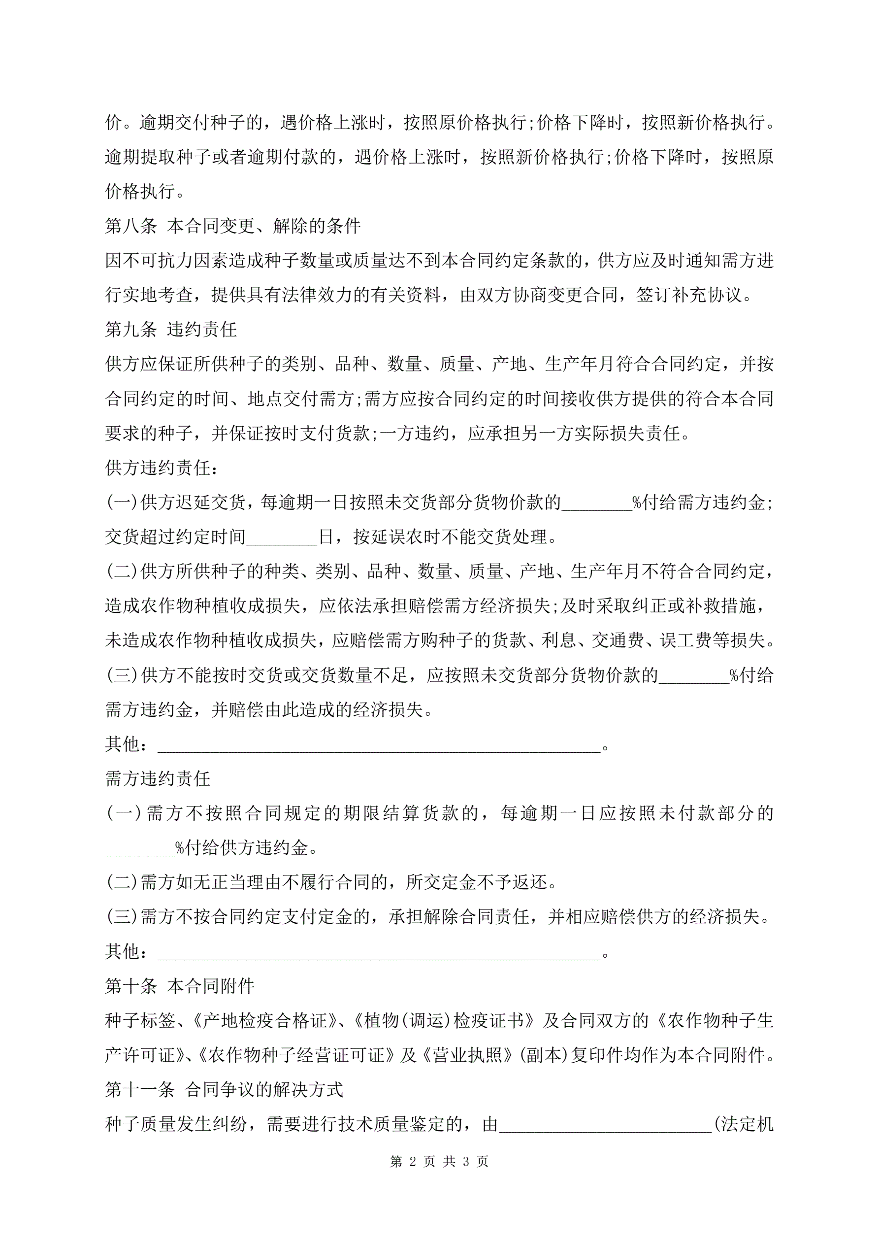 >标准版农作物种子买卖合同范文