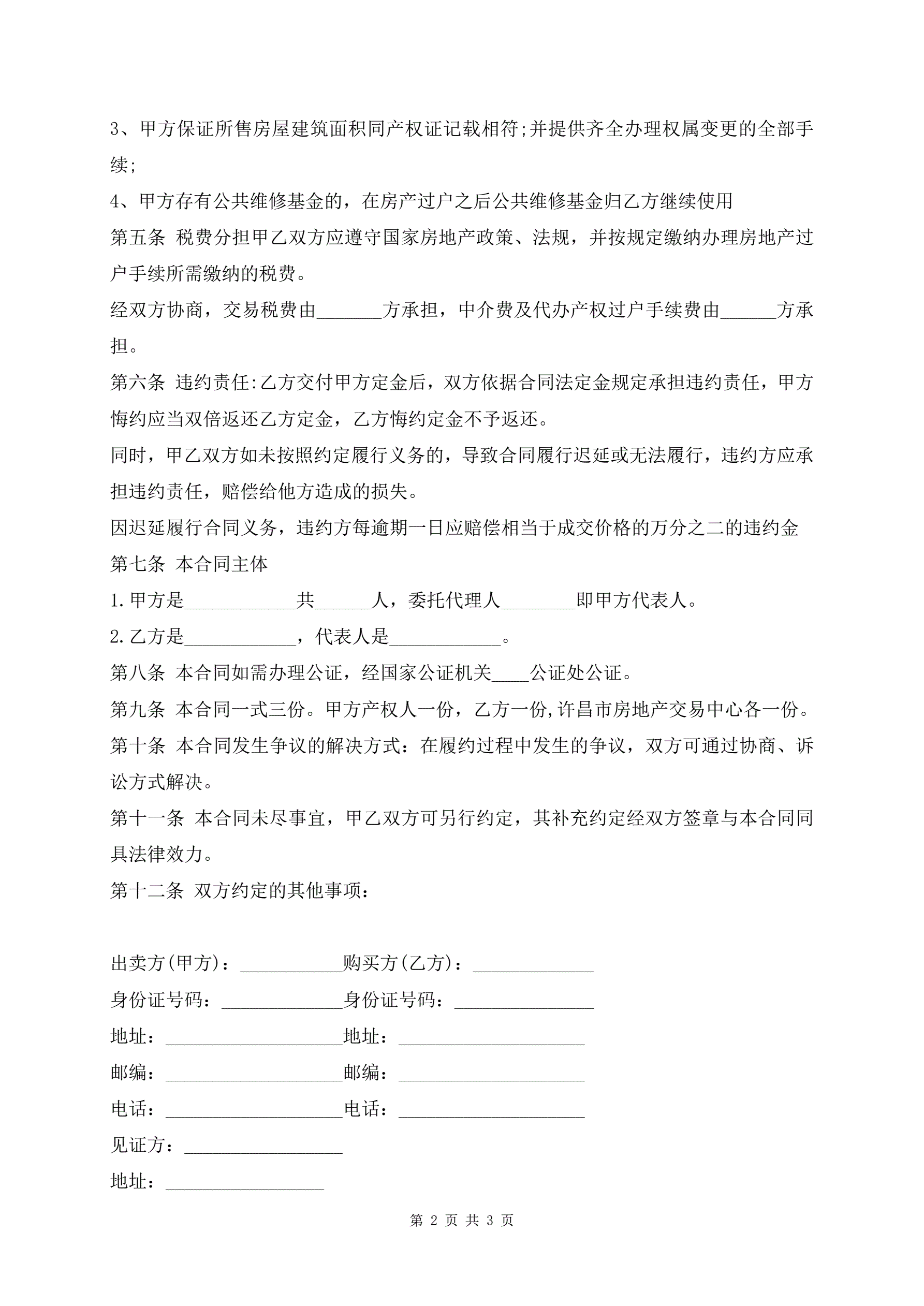 >常用的二手商品房买卖合同范本