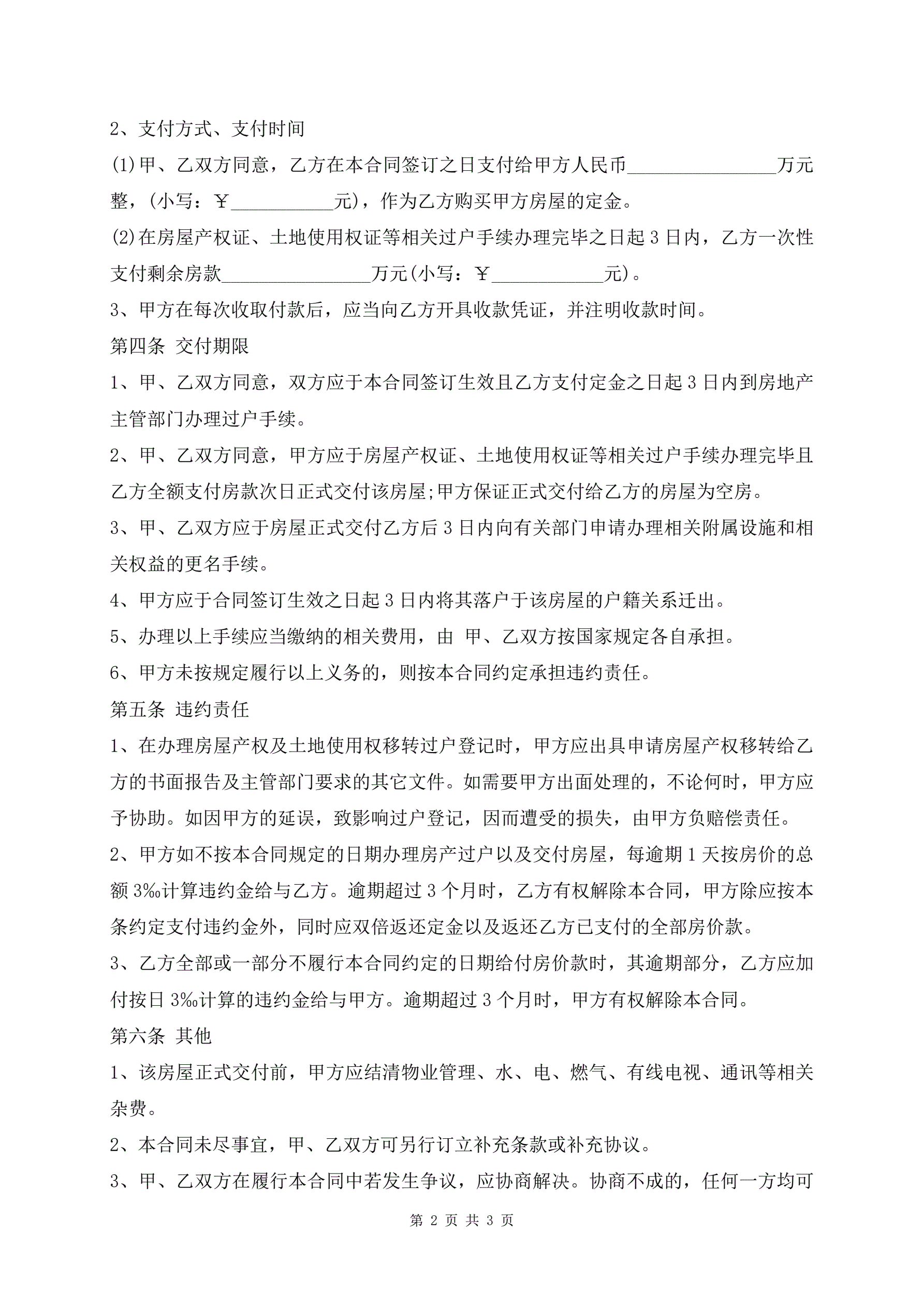 >最新海南二手房买卖合同范本