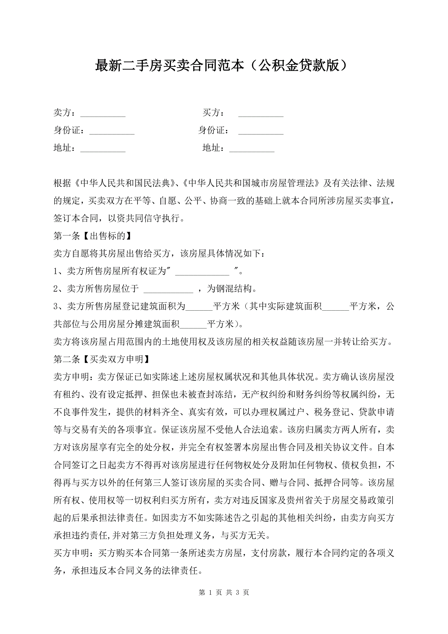 >最新二手房买卖合同范本(公积金贷款版)