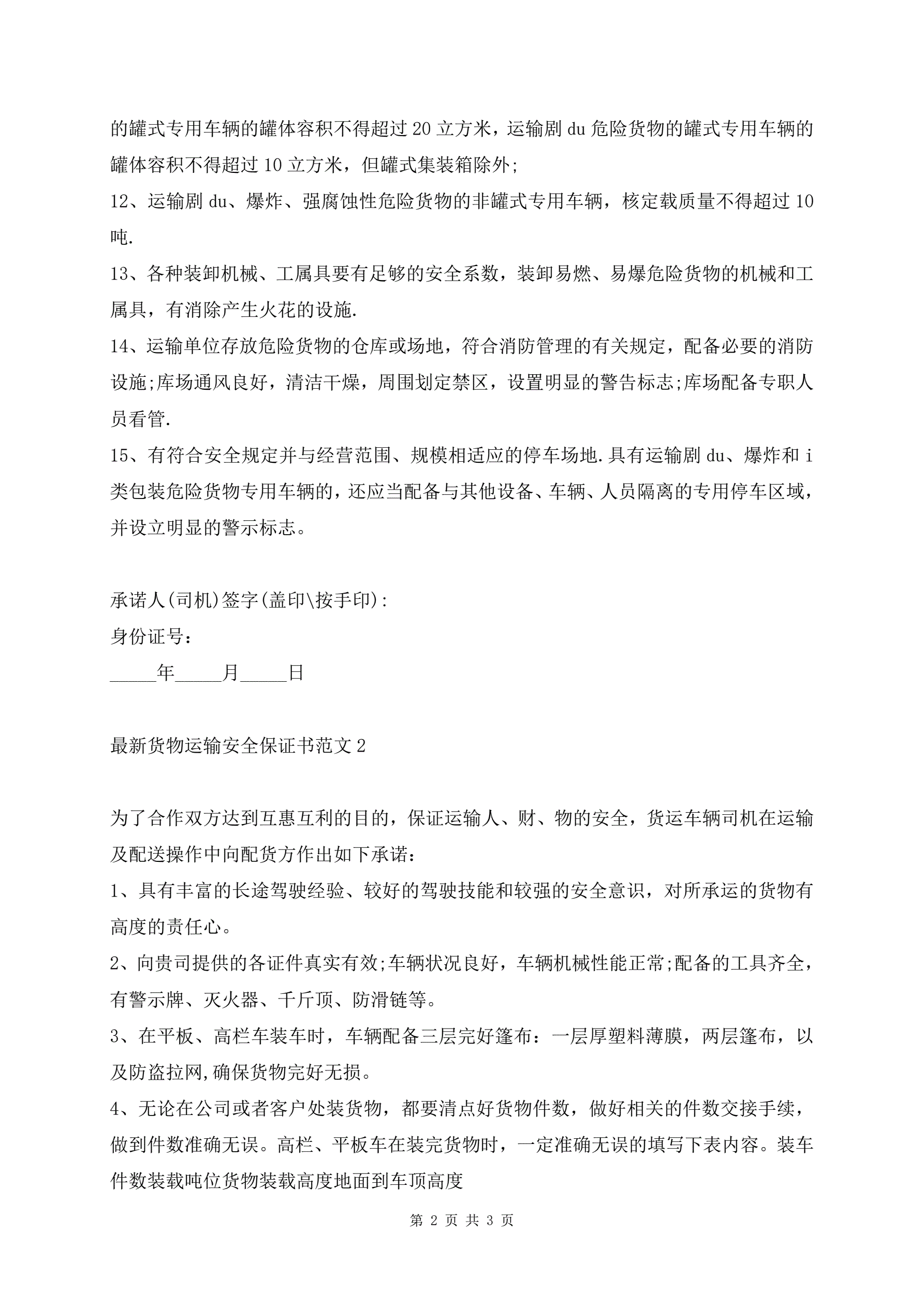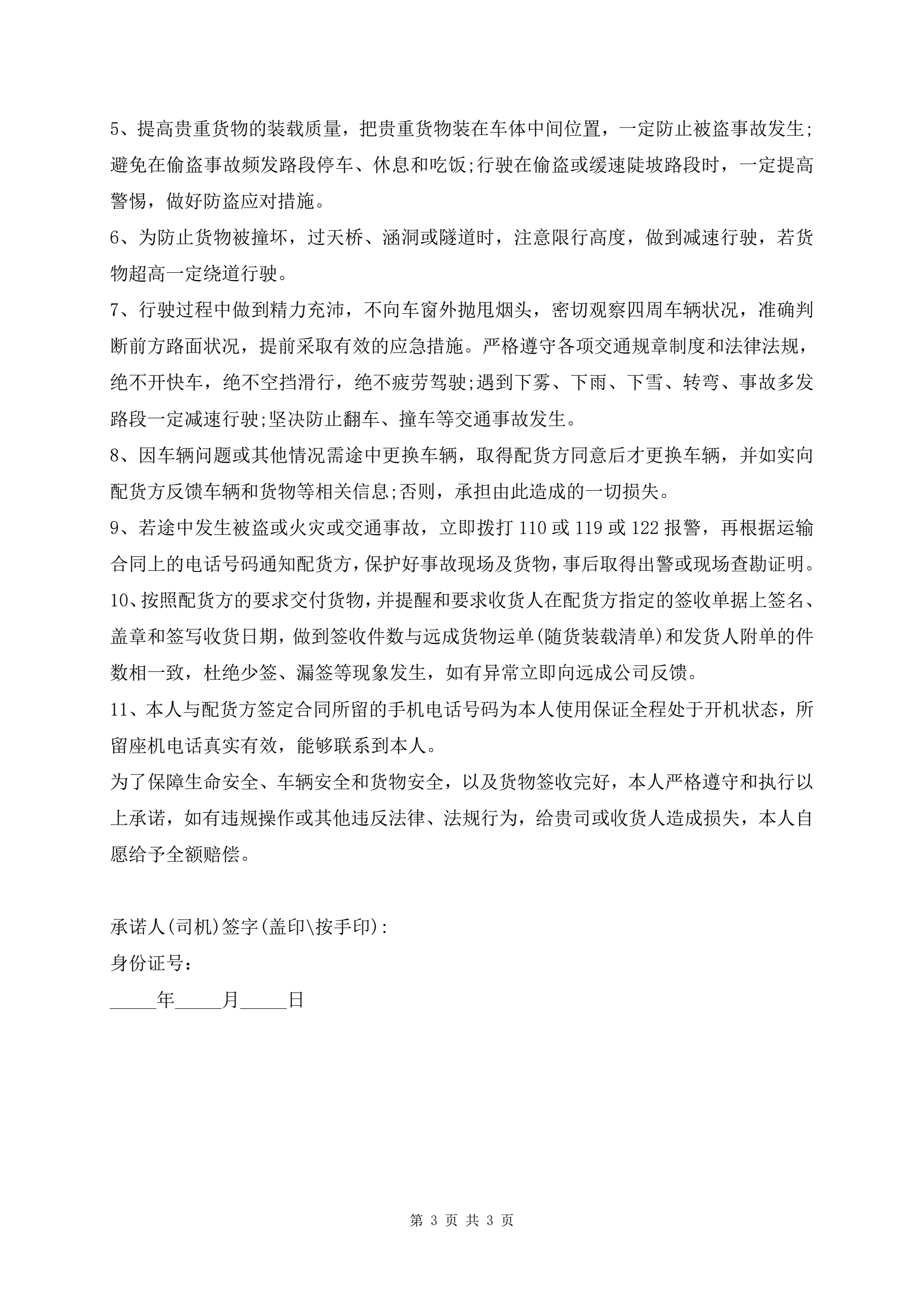 >最新货物运输安全保证书范文