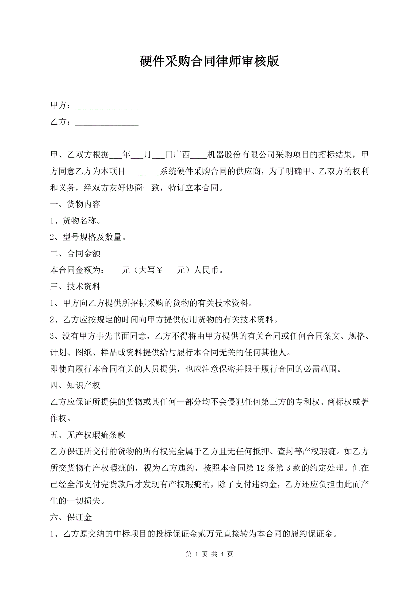 硬件采购合同律师审核版