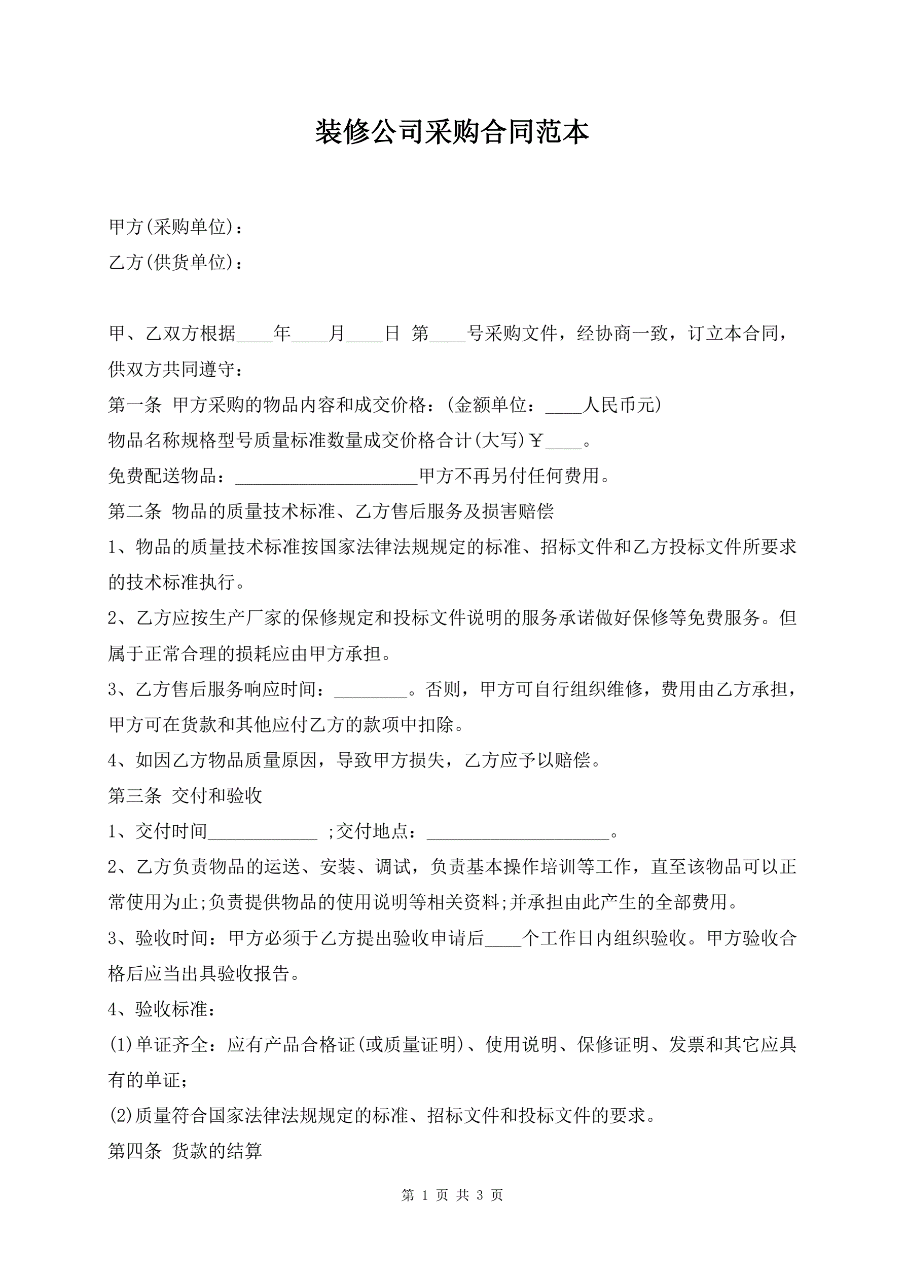 装修公司采购合同范本