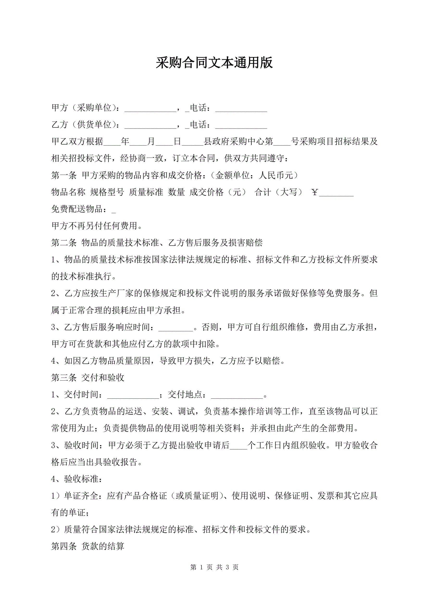 采购合同文本通用版