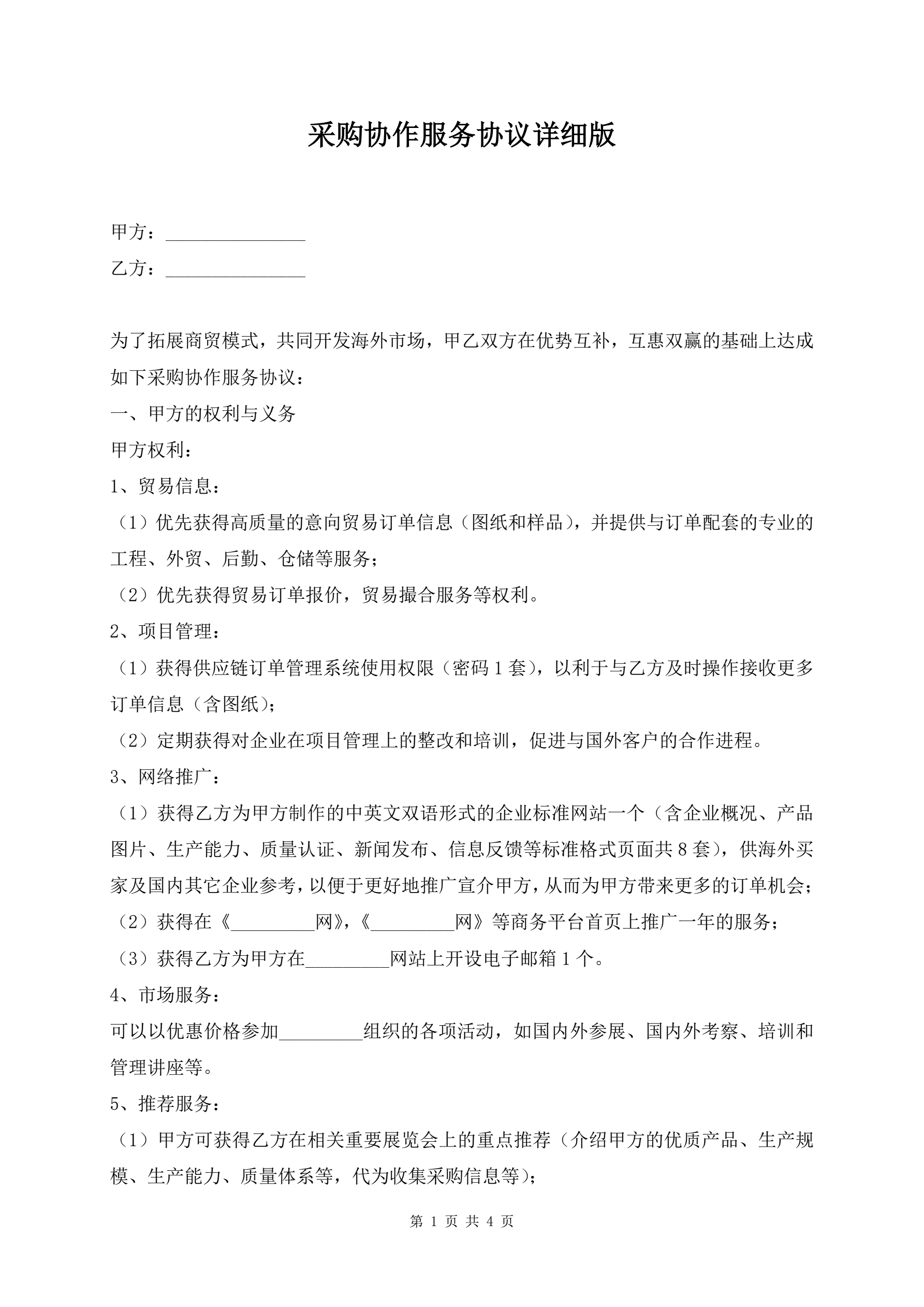 采购协作服务协议详细版