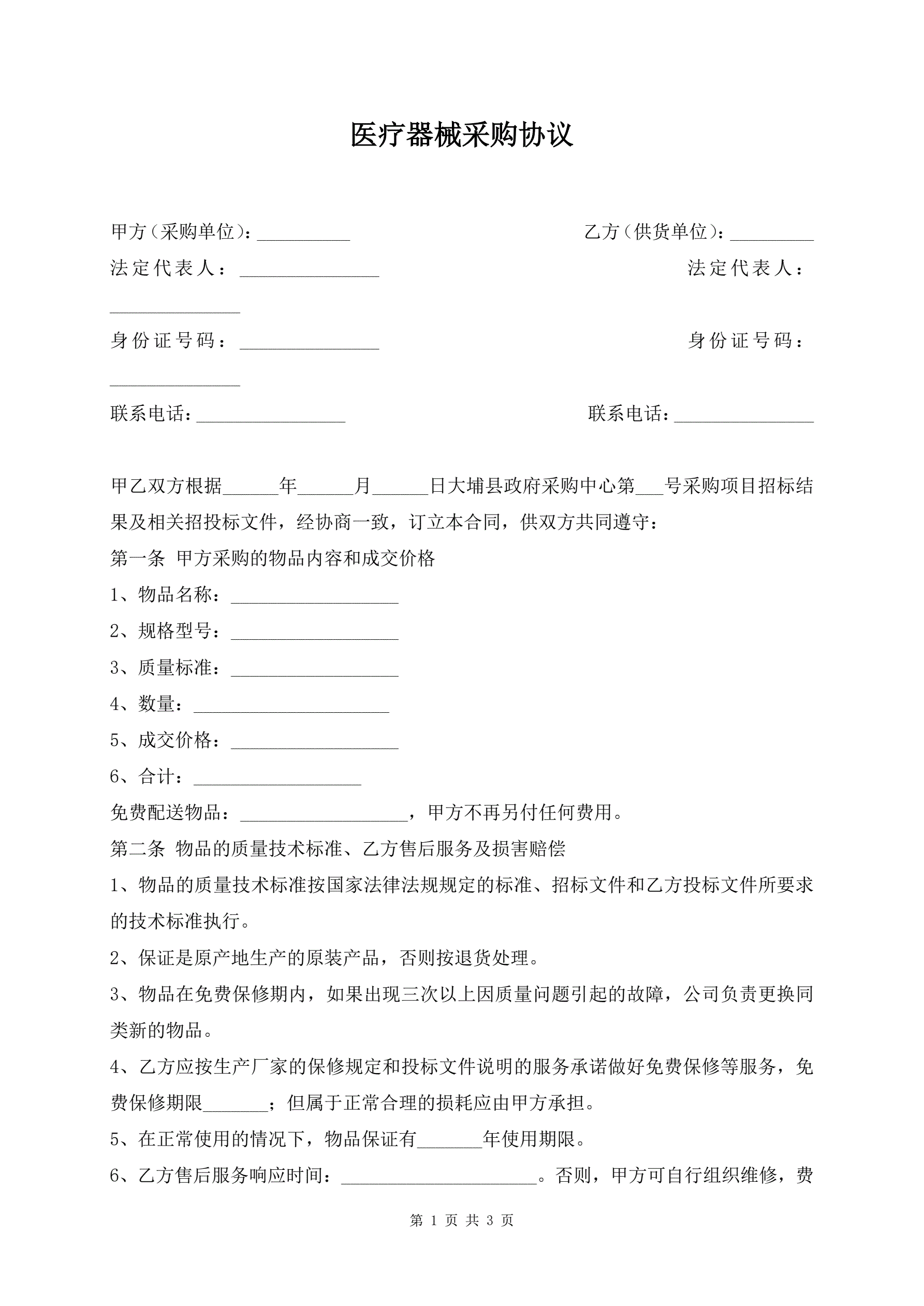 >医疗器械采购协议