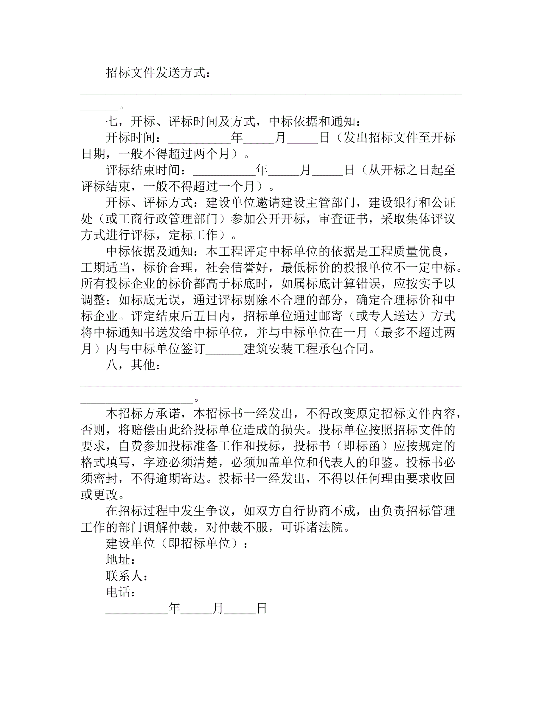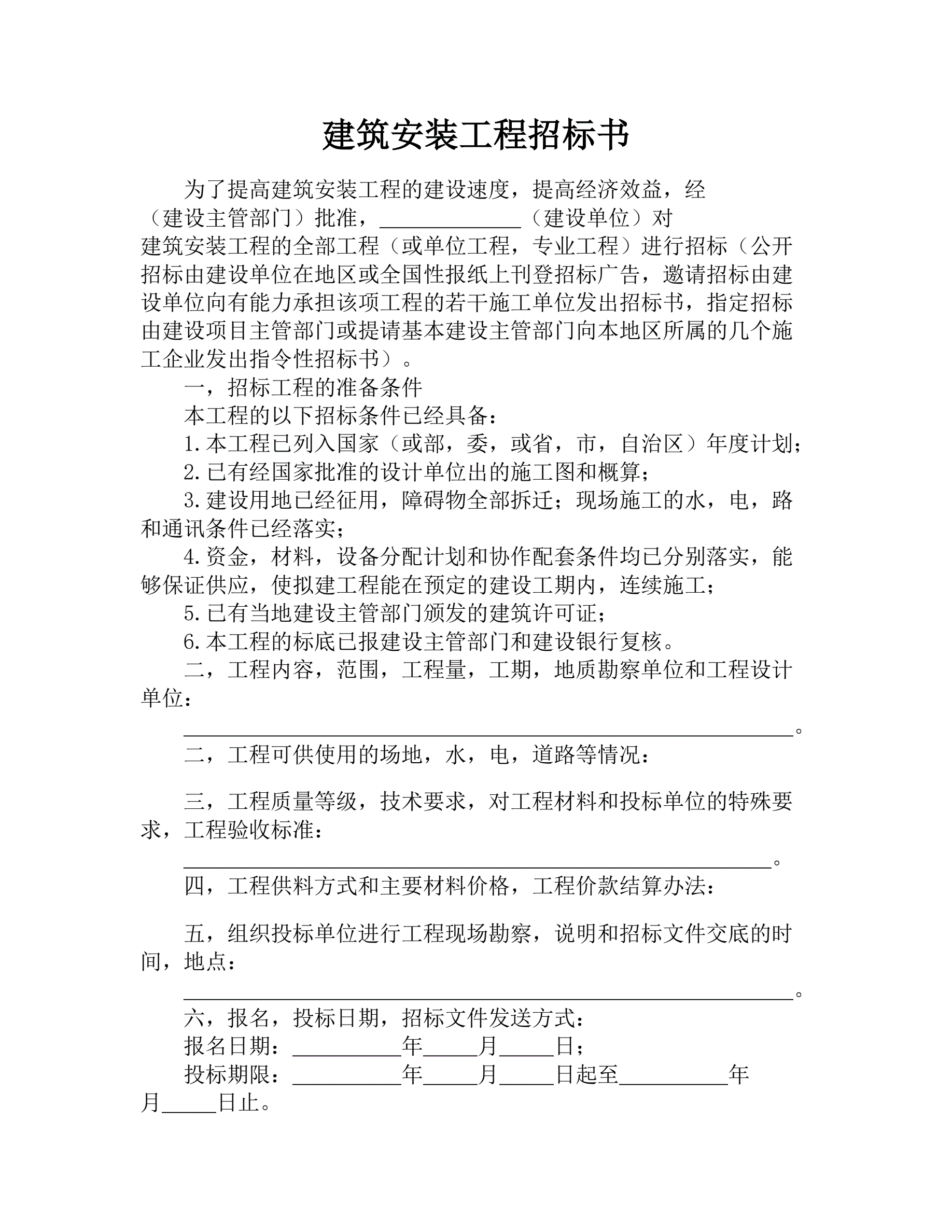 建筑安装工程招标书