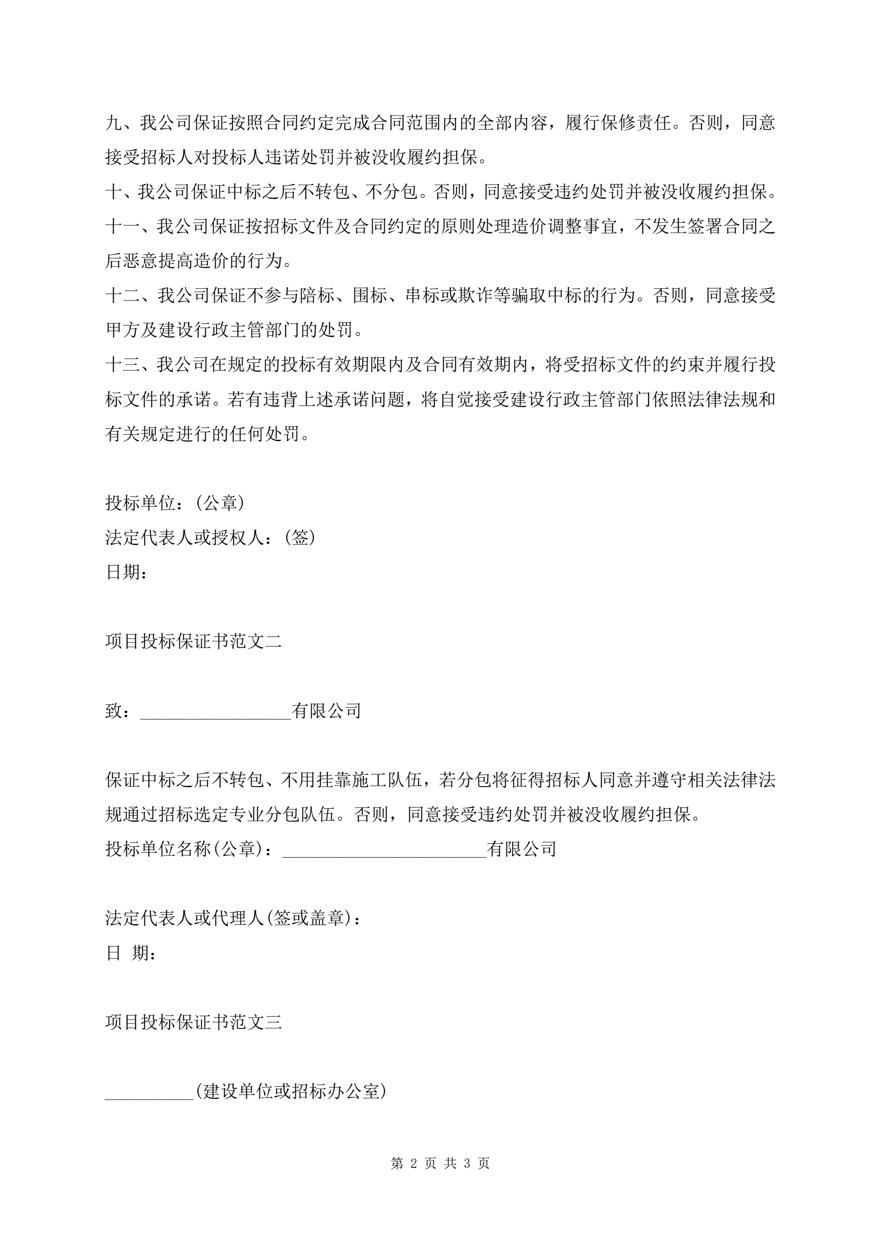 >项目投标保证书范文