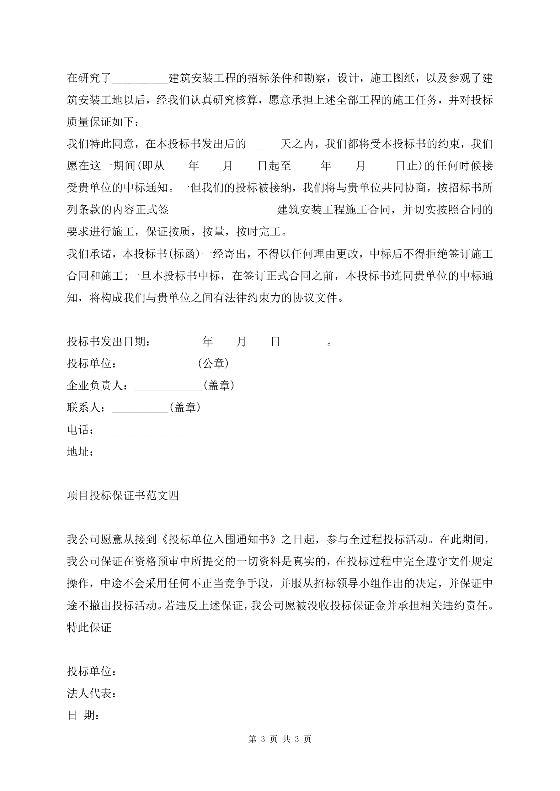 项目投标保证书范文