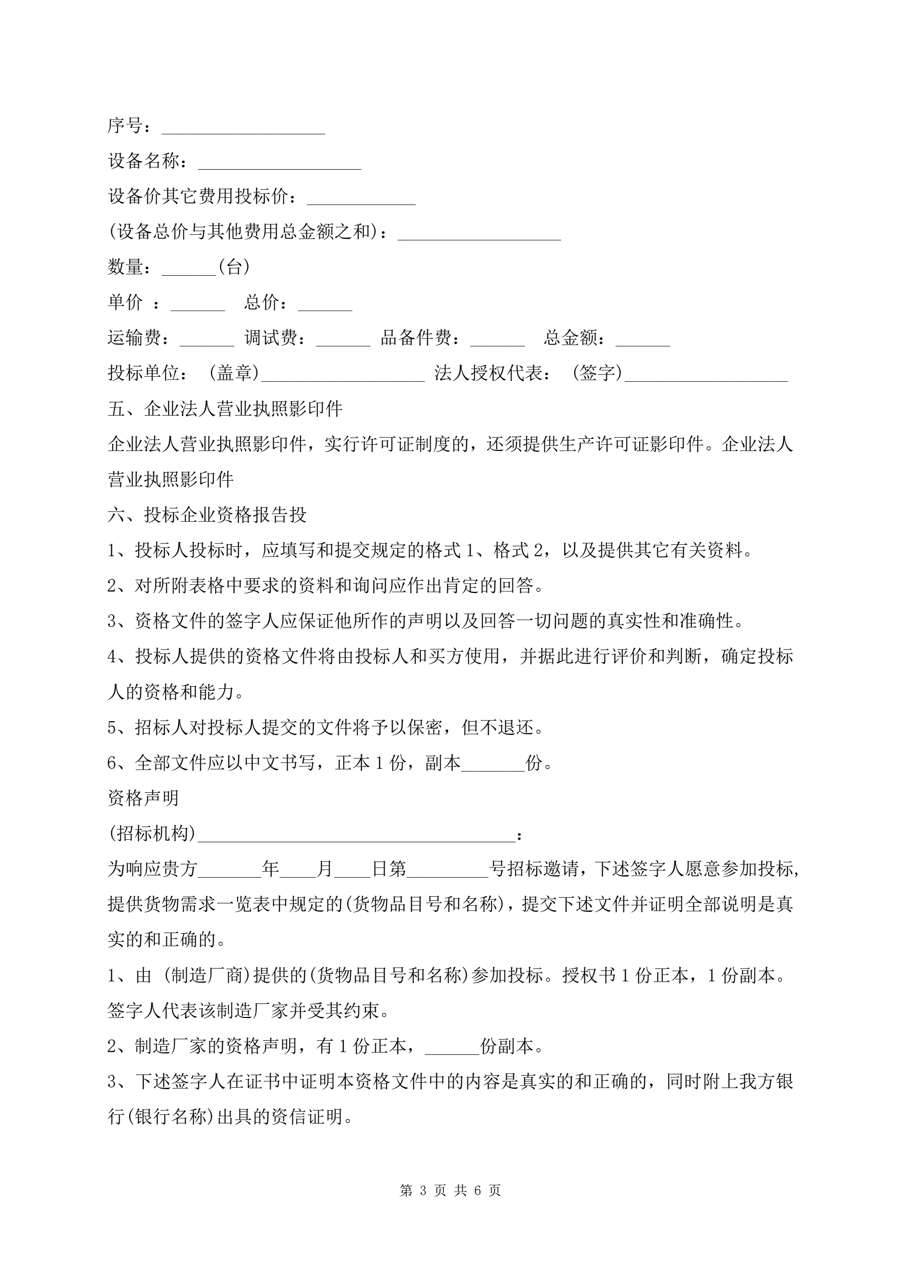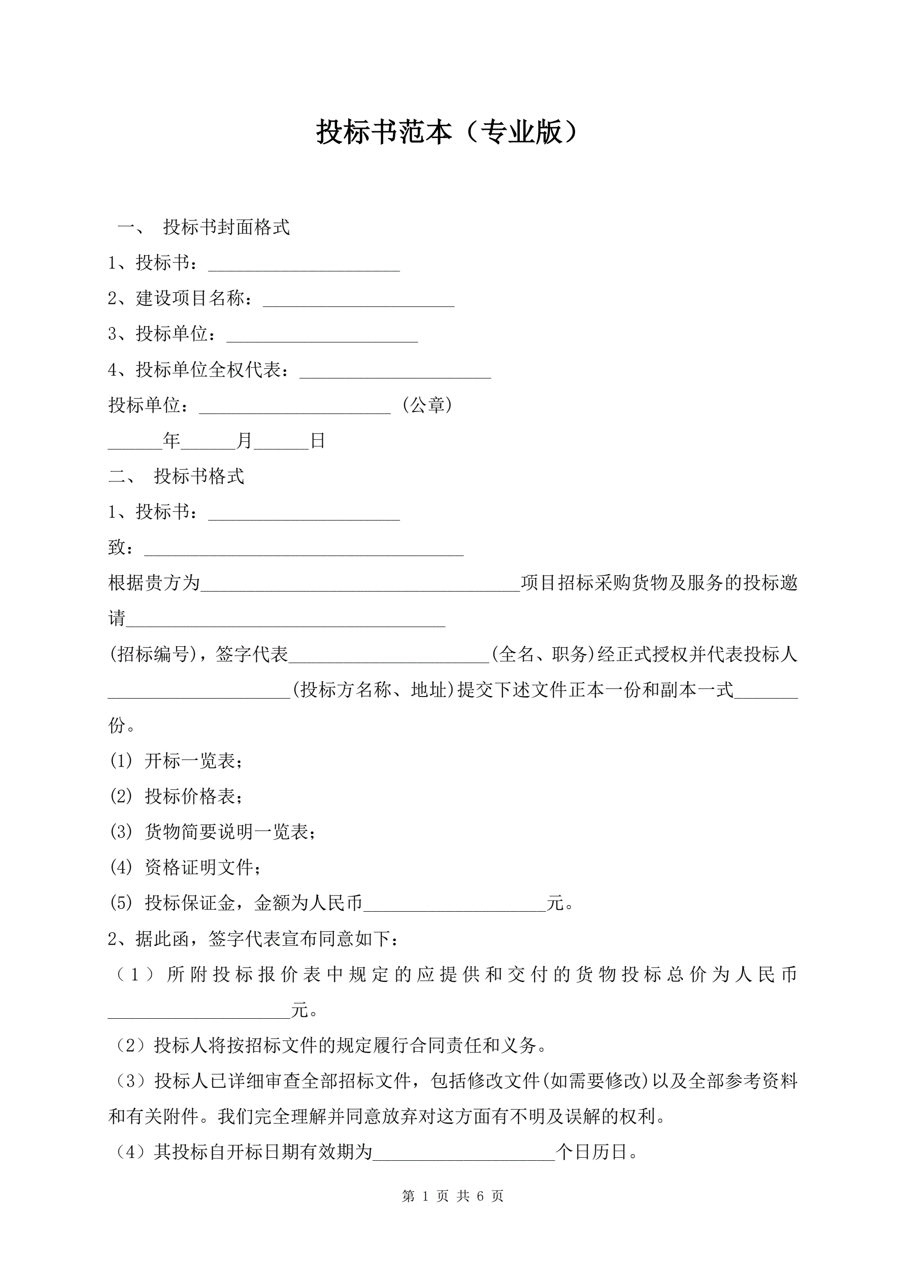 >投标书范本(专业版)