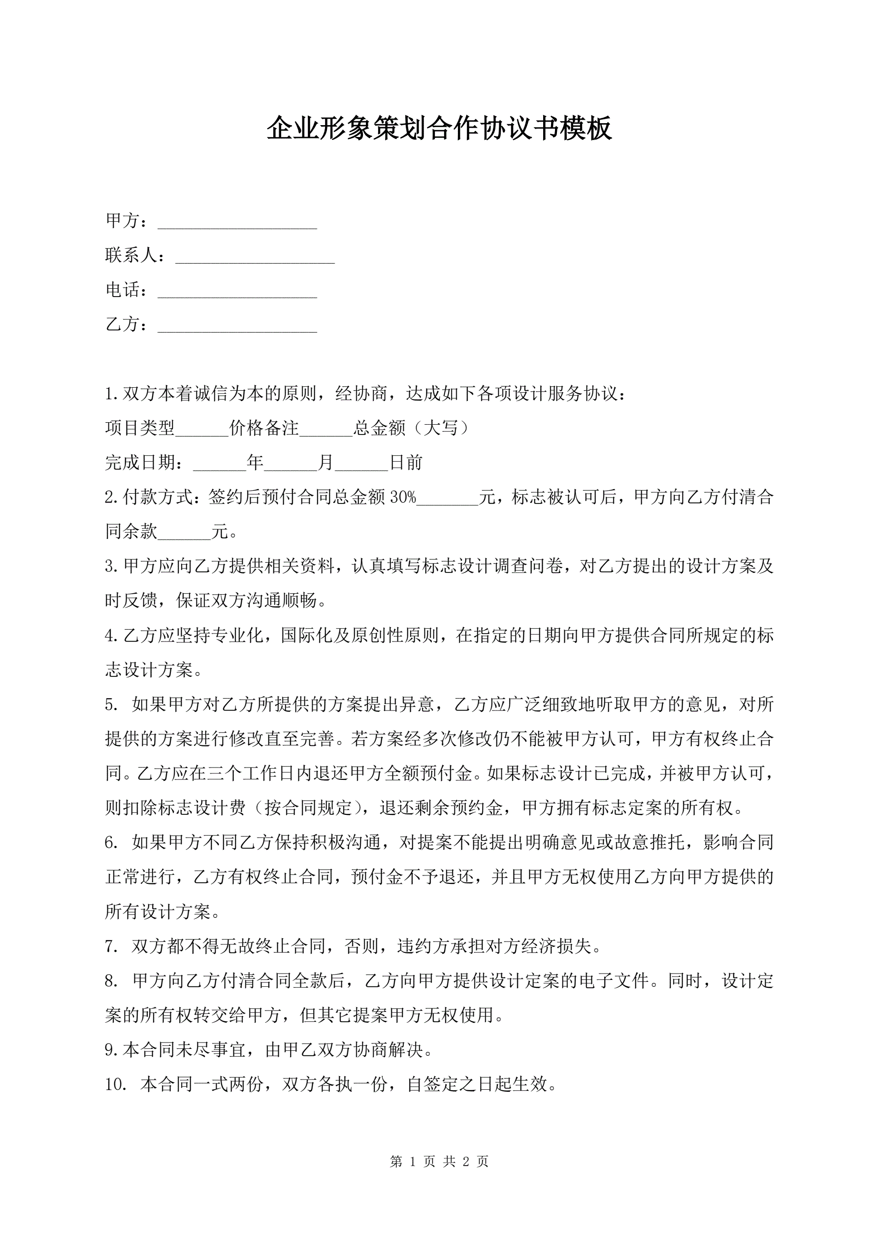企业形象策划合作协议书模板