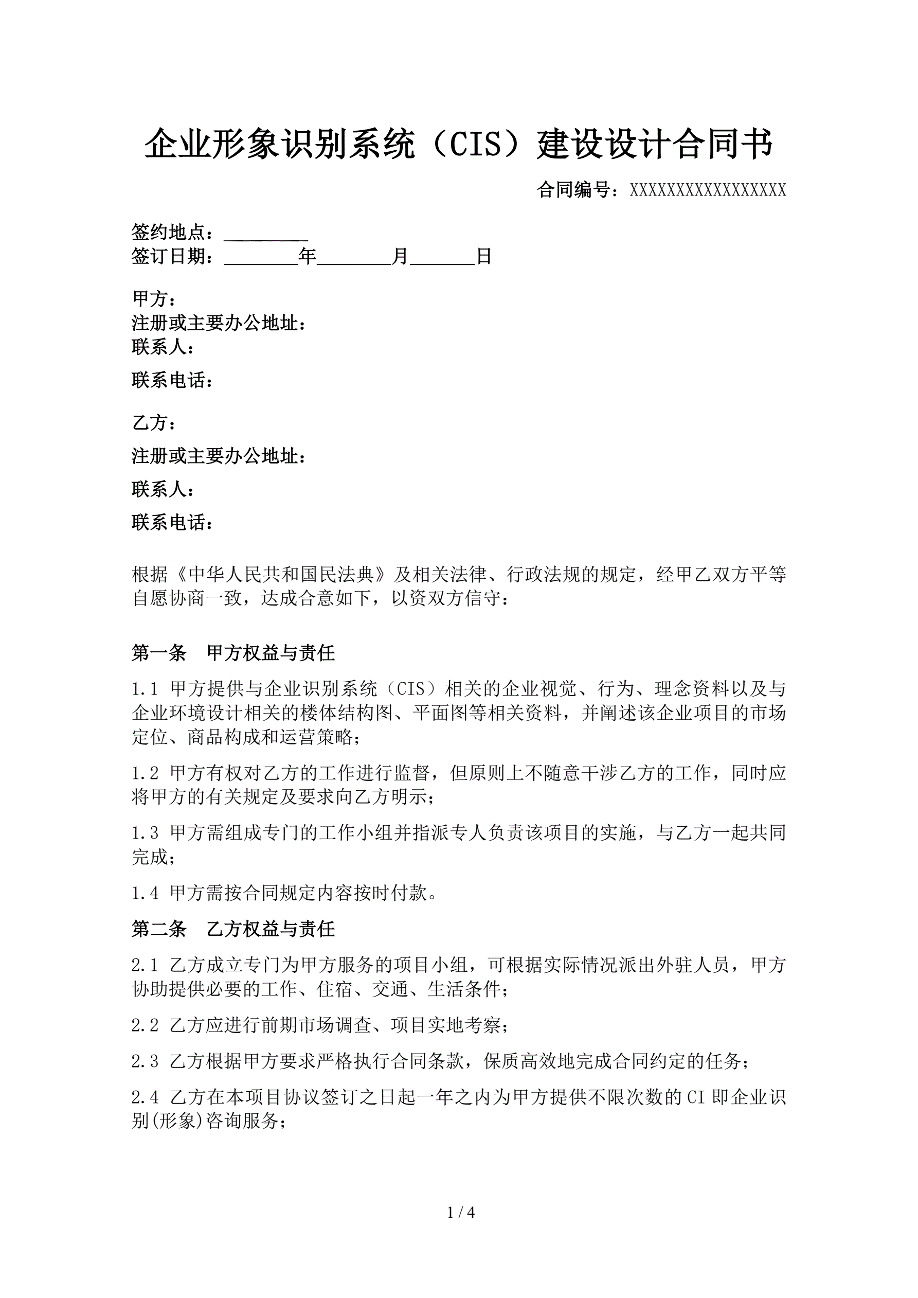 企业形象识别系统(CIS)建设设计合同书