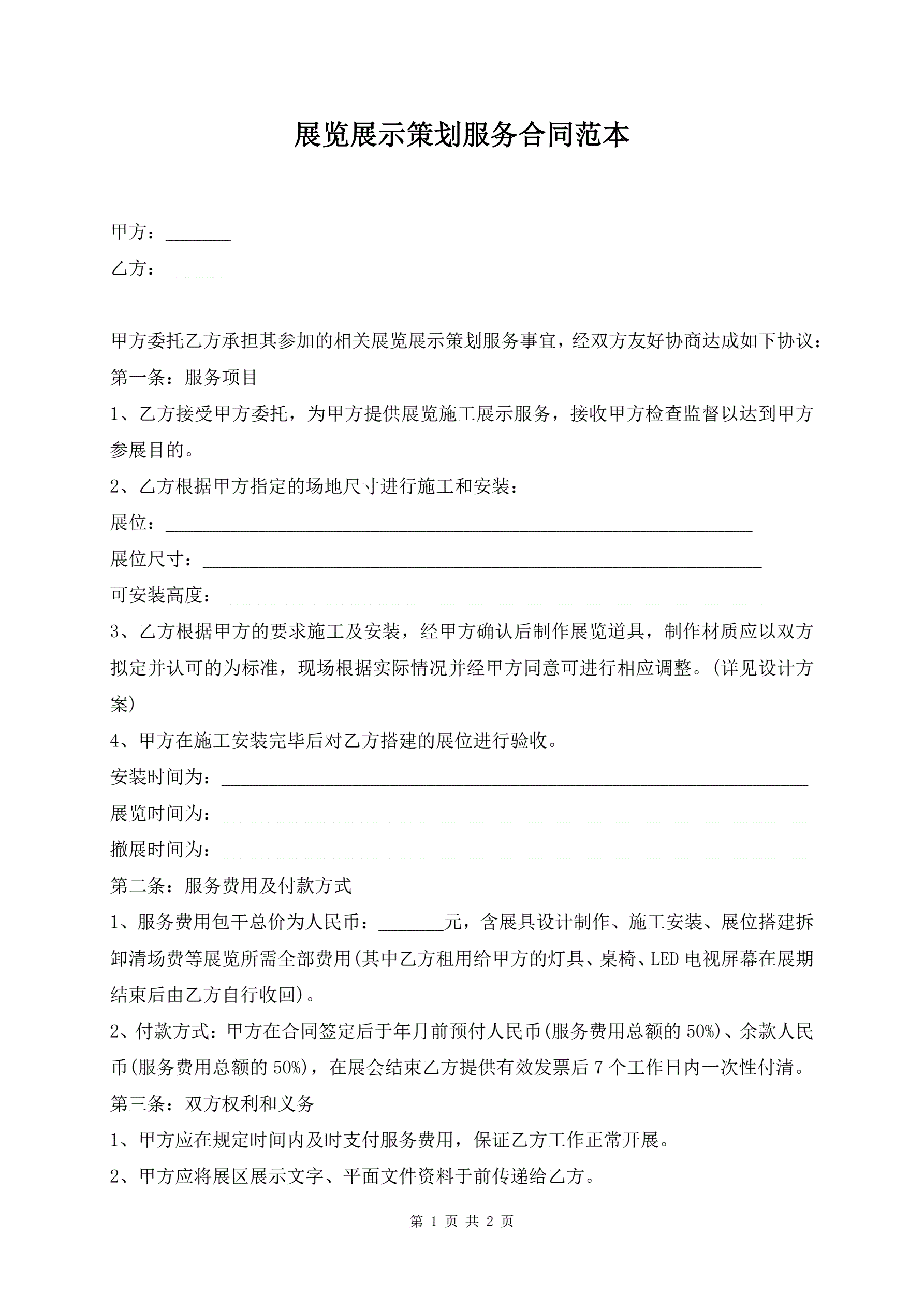 >展览展示策划服务合同范本
