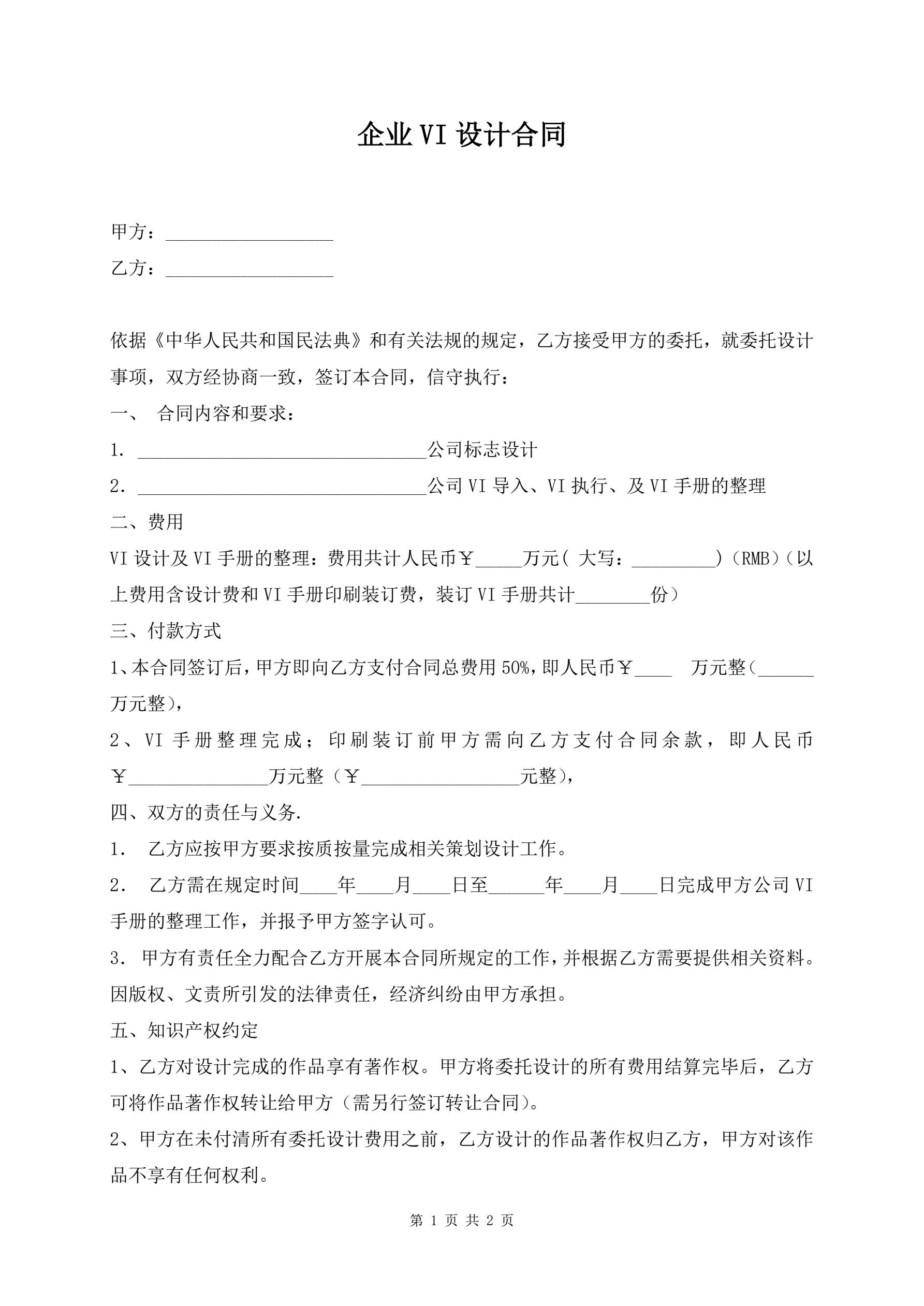 企业VI设计合同