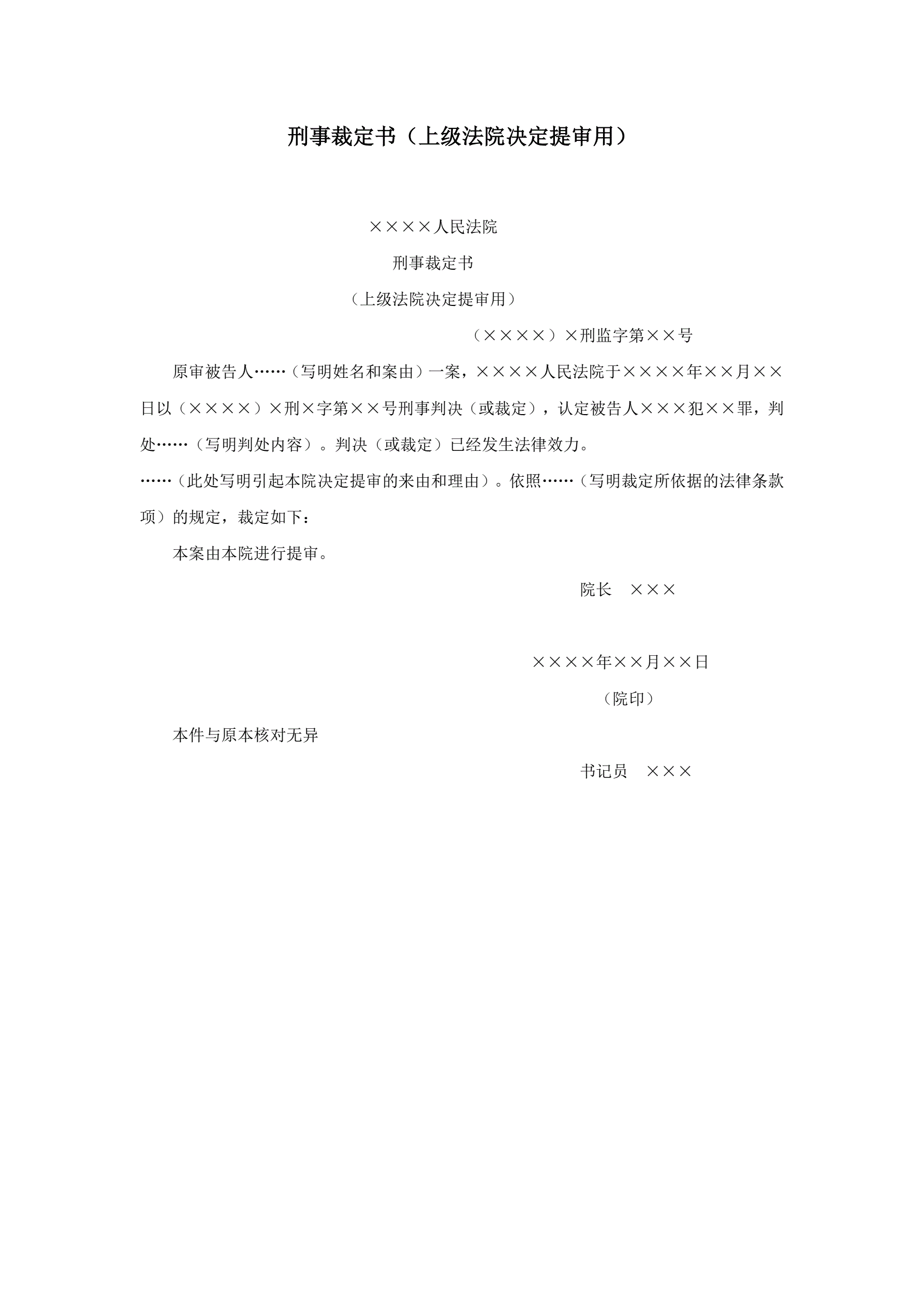 >刑事裁定书(上级法院决定提审用)