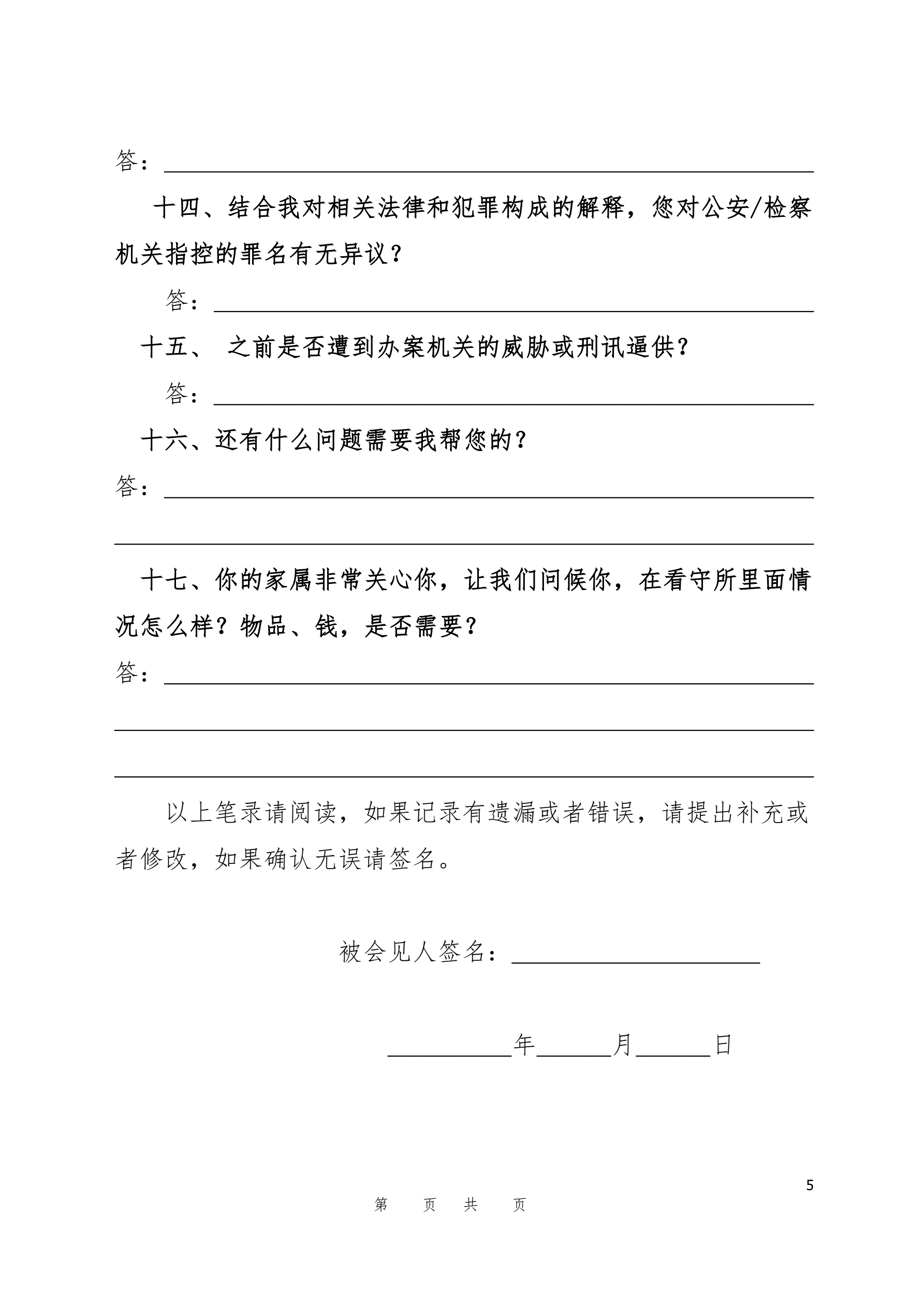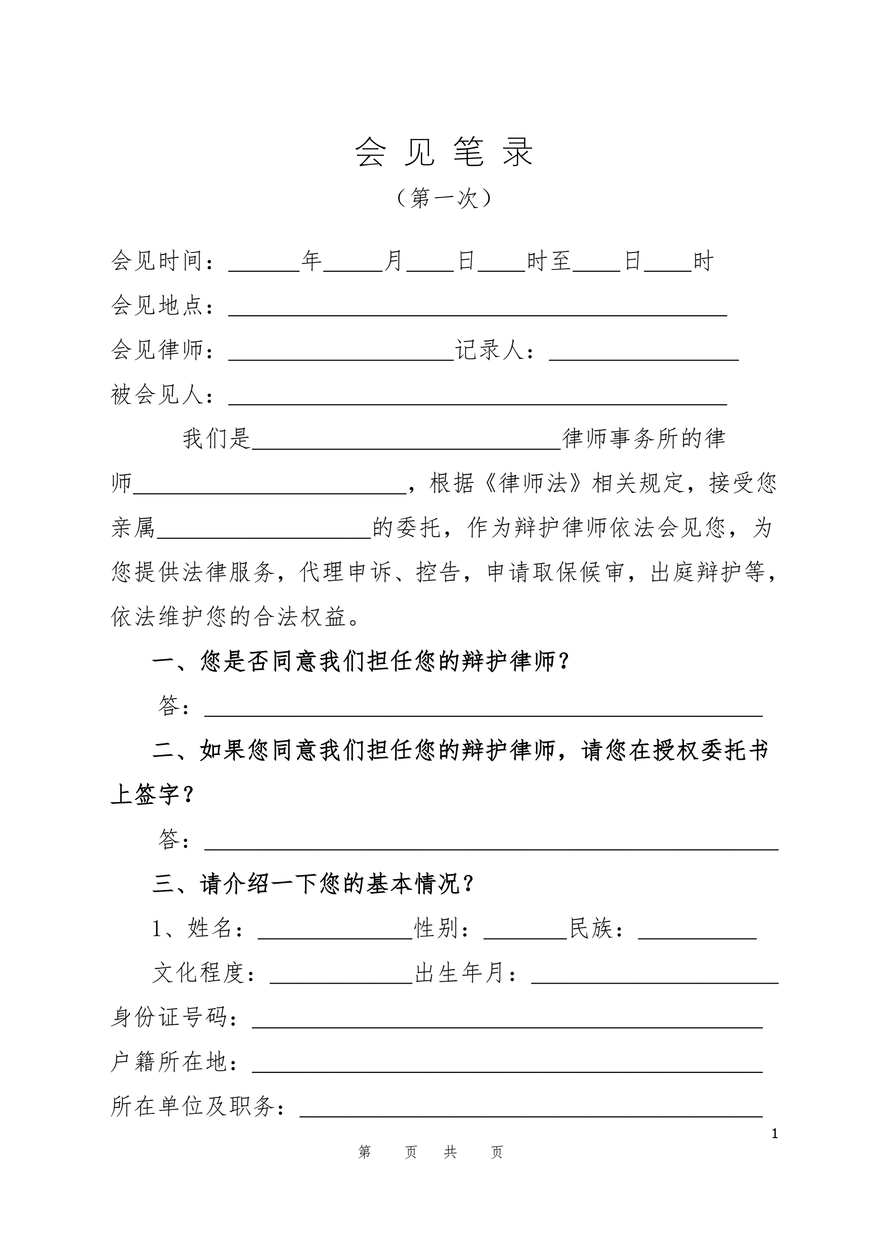 侦查阶段第一次会见笔录