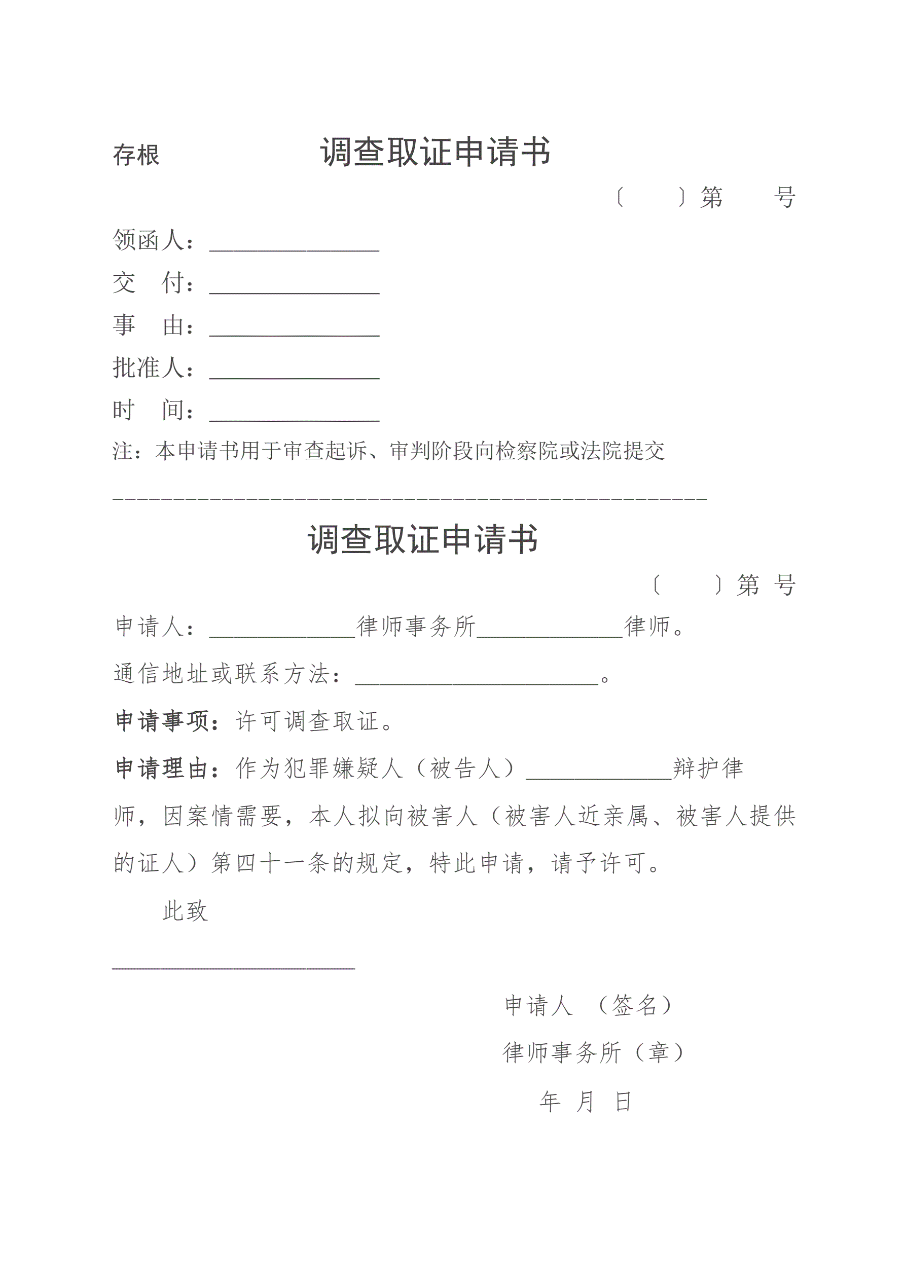 >(被害人)调查取证申请书