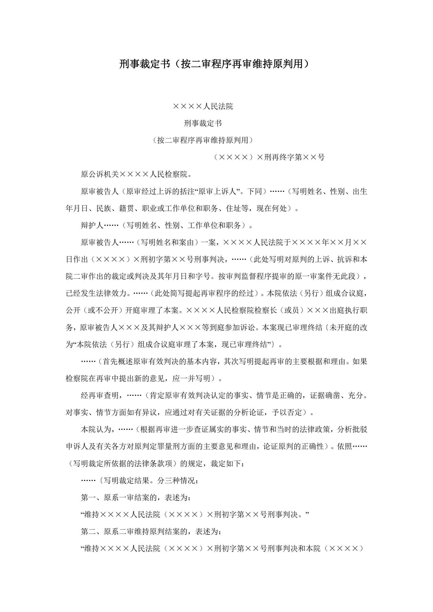 刑事裁定书(按二审程序再审维持原判用)