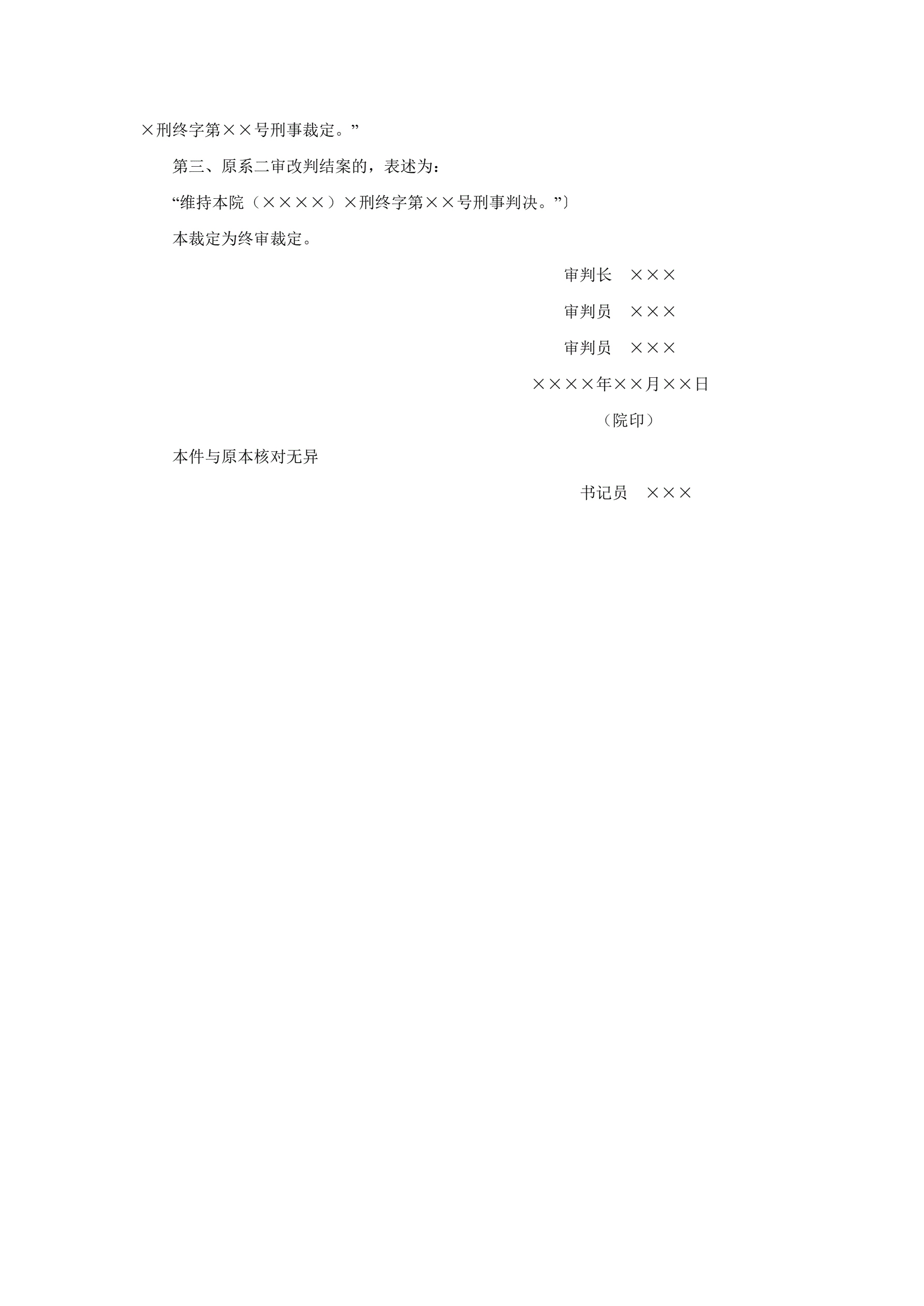 >刑事裁定书(按二审程序再审维持原判用)