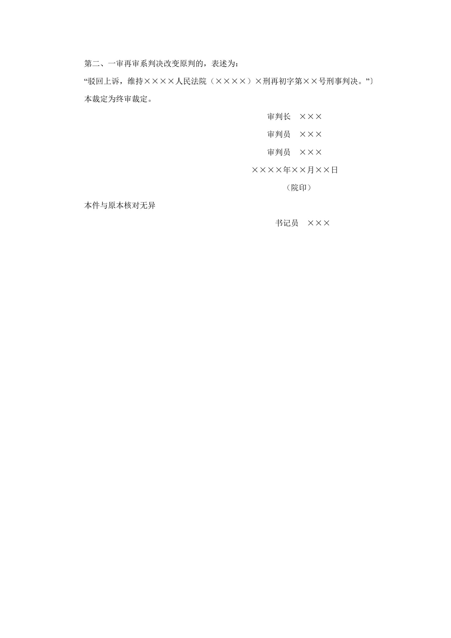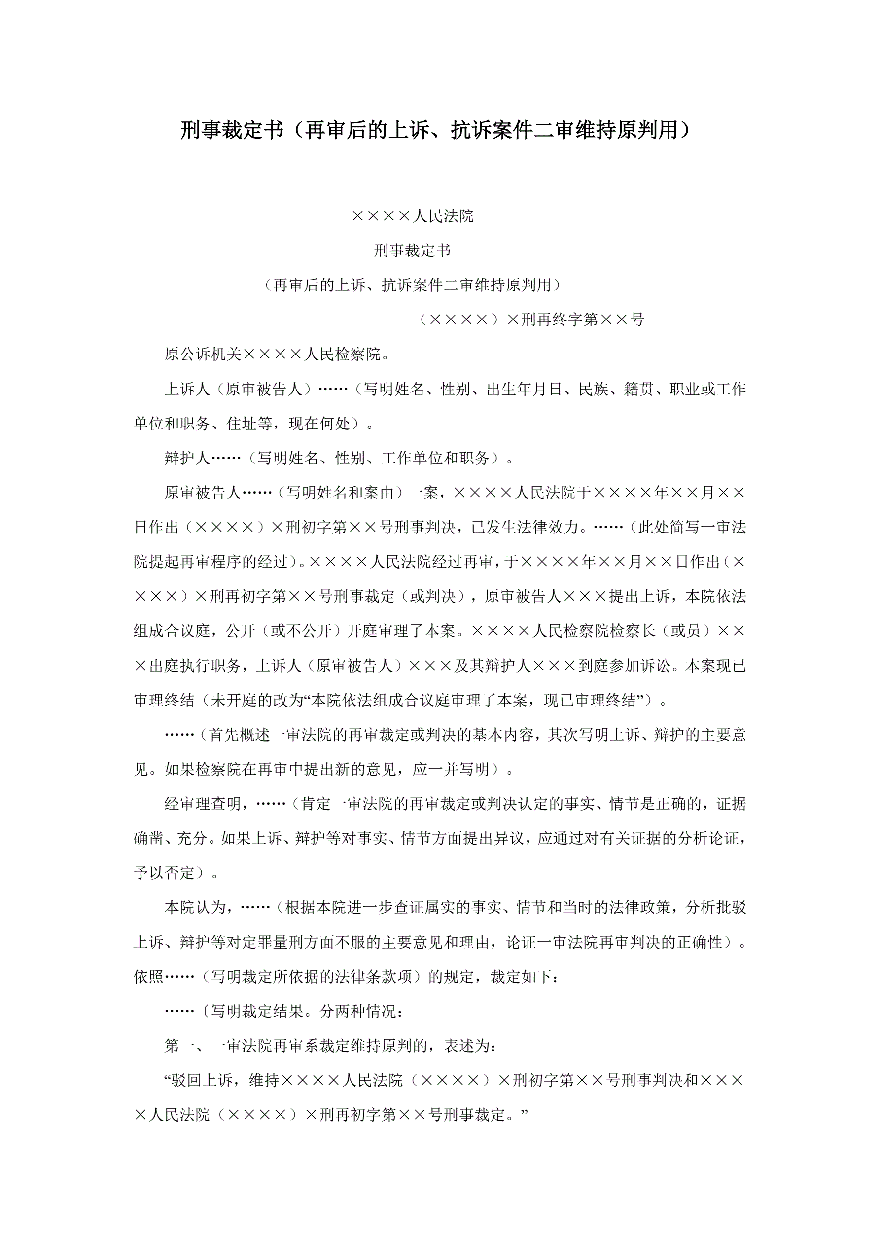 刑事裁定书(再审后的上诉、抗诉案件二审维持原判用)