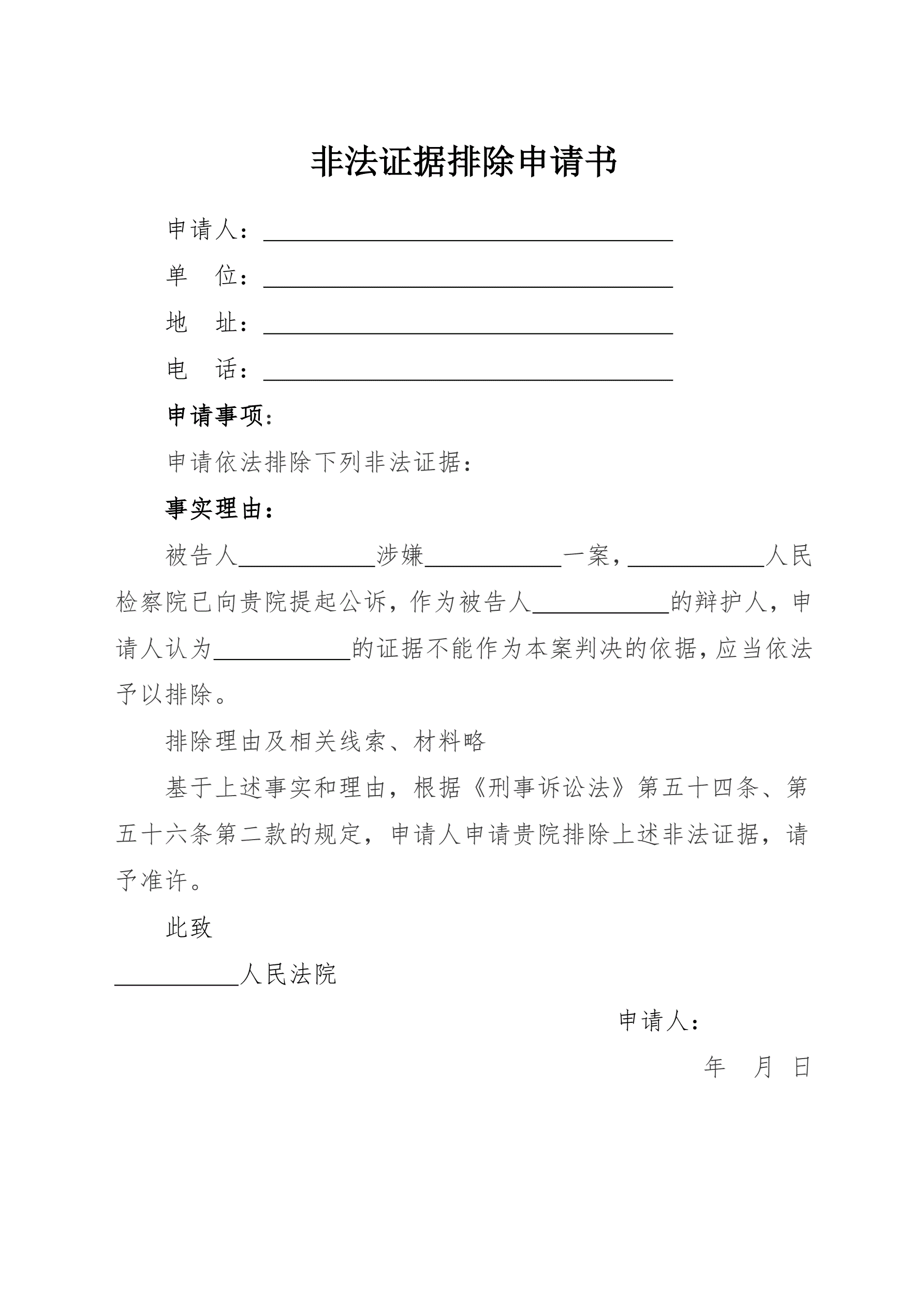 非法证据排除申请
