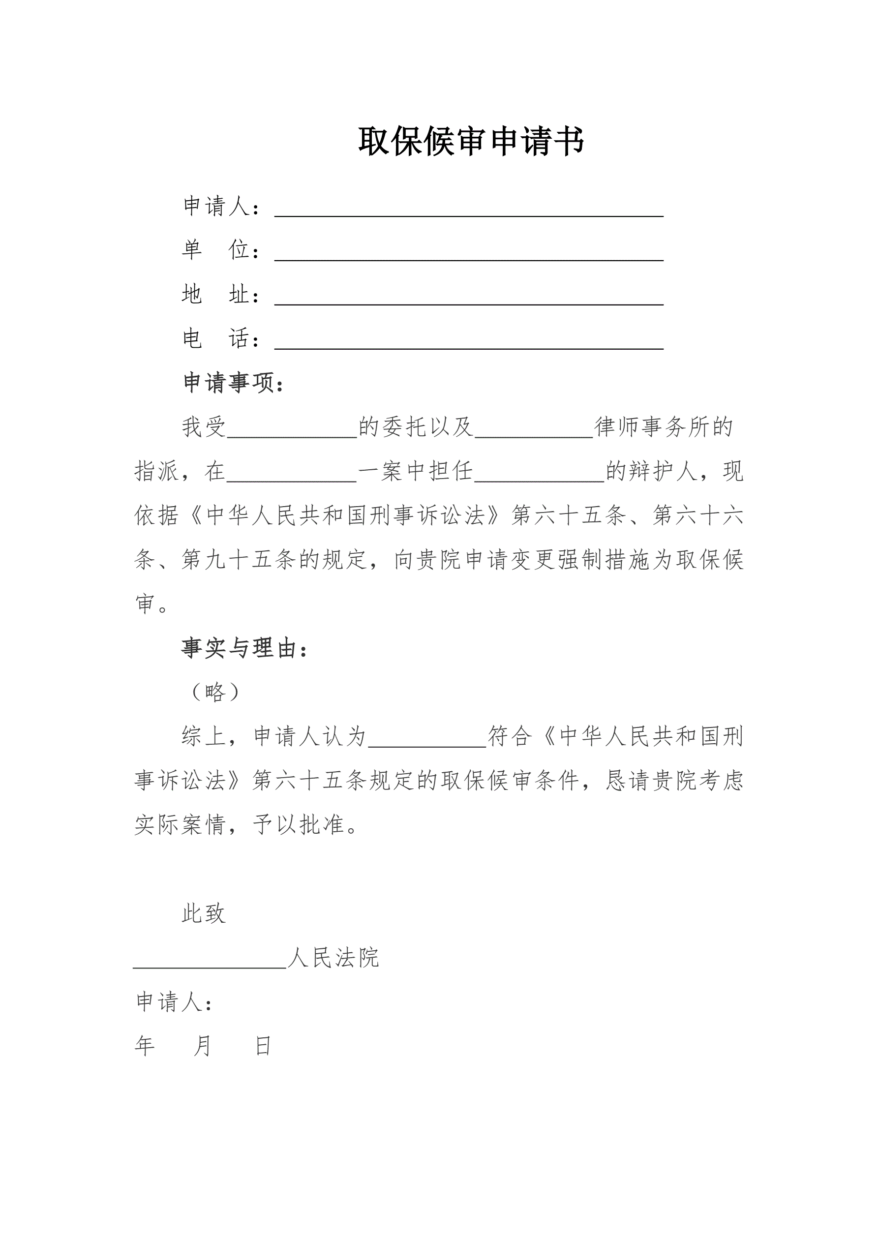 >取保候审申请书