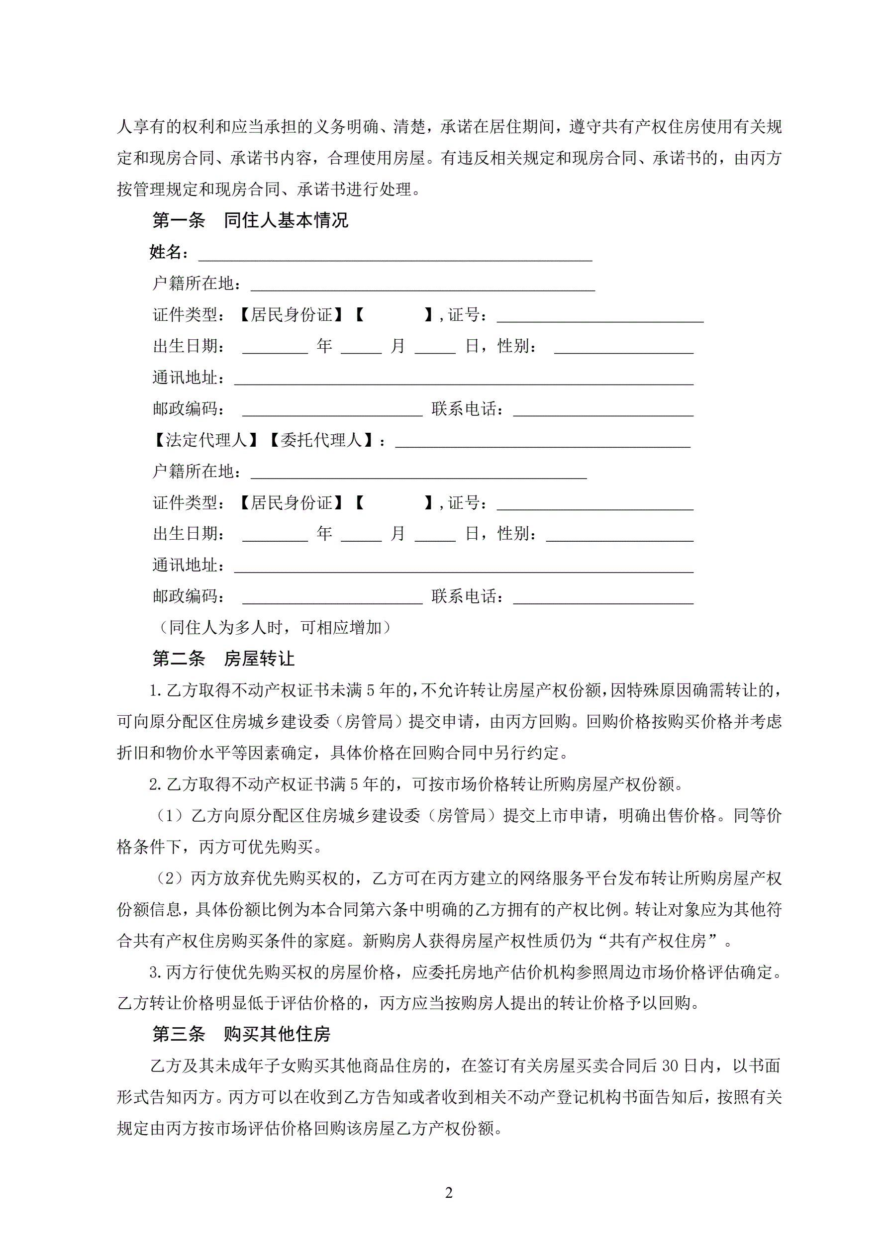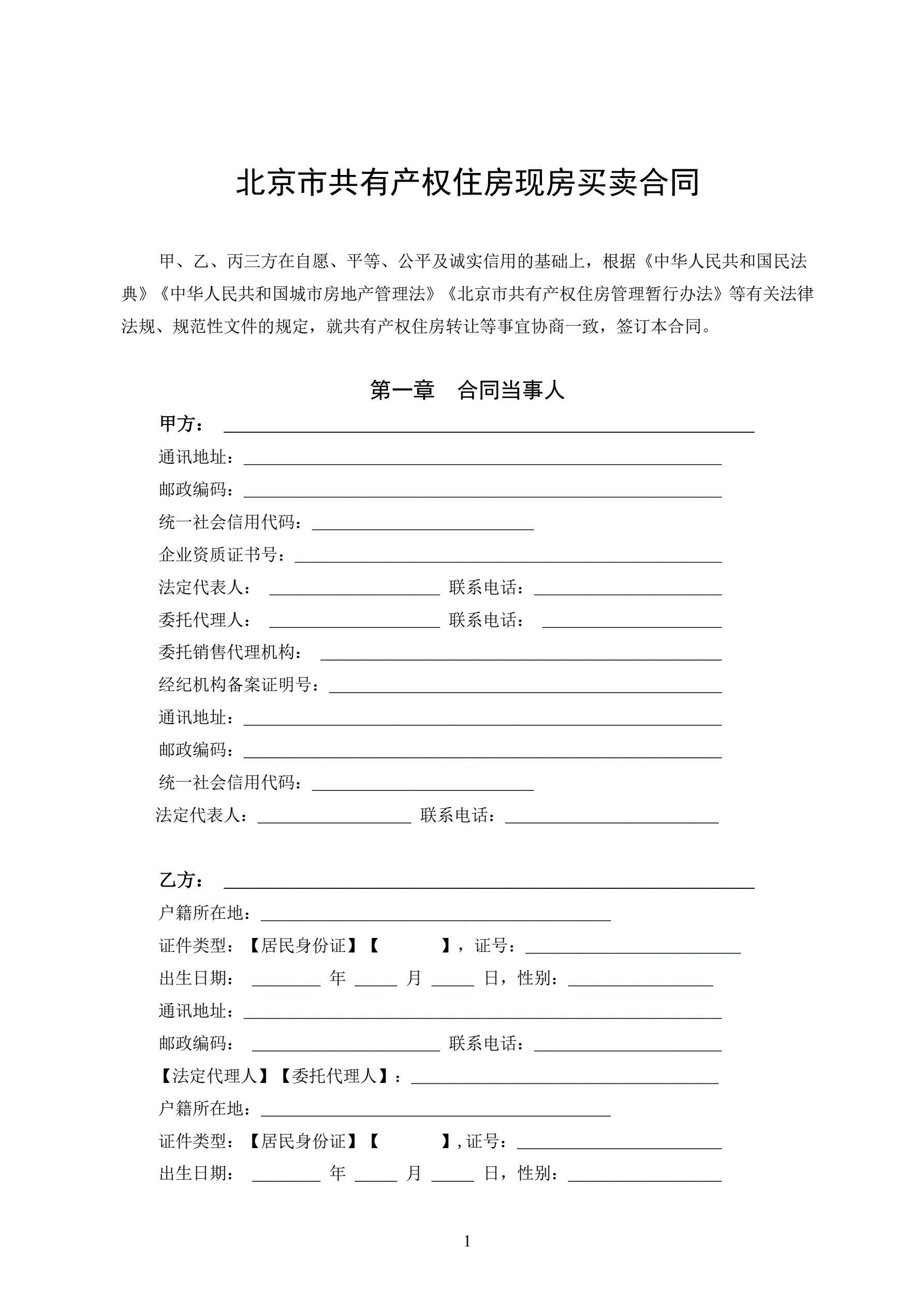 >北京市共有产权住房现房买卖合同示范文本-修订