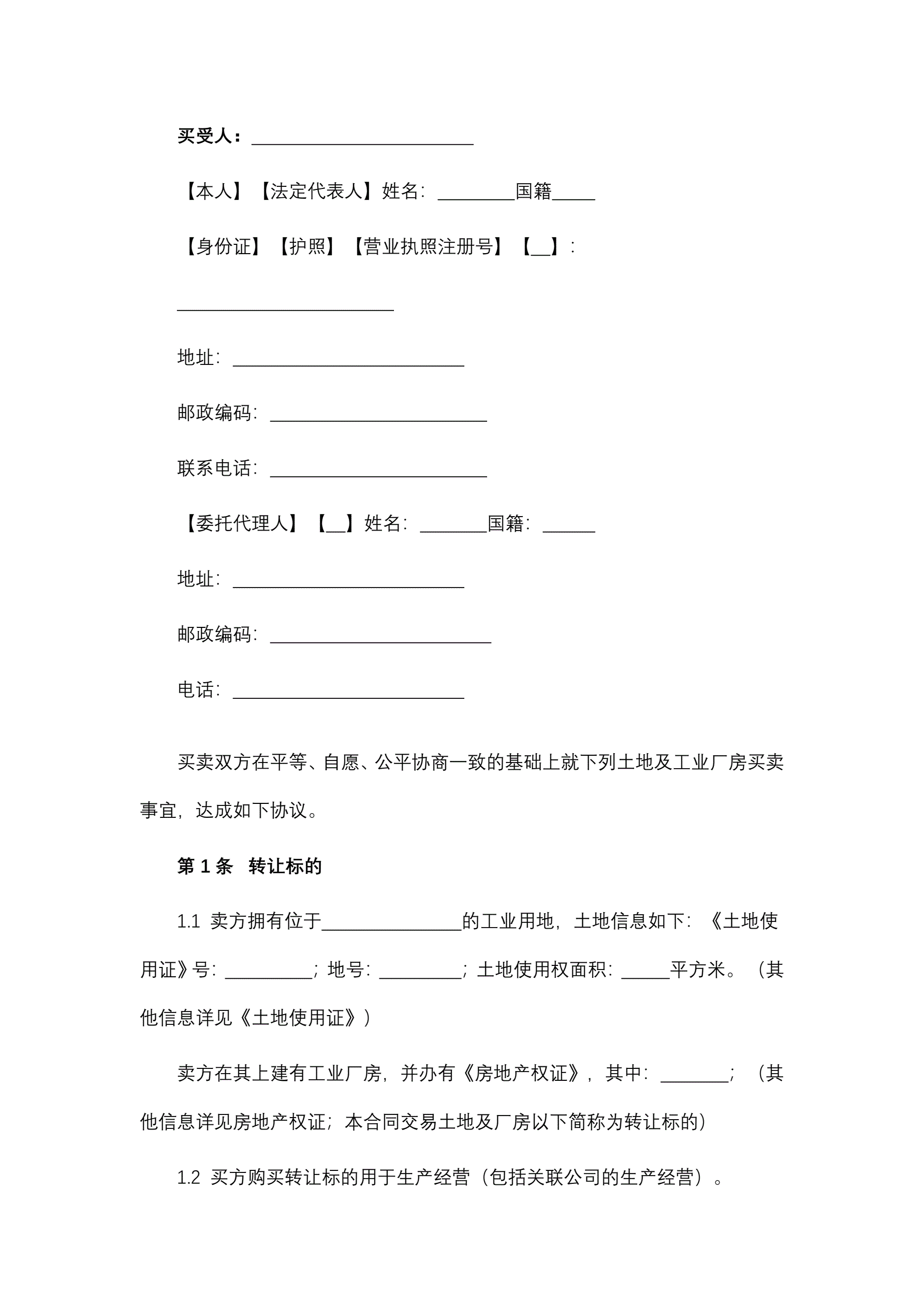 工业厂房买卖合同
