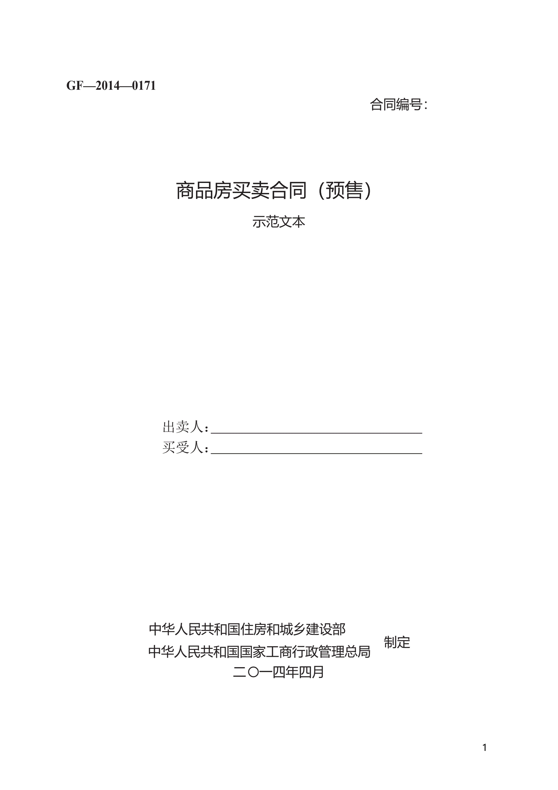 >商品房买卖合同(预售) GF—2014—0171